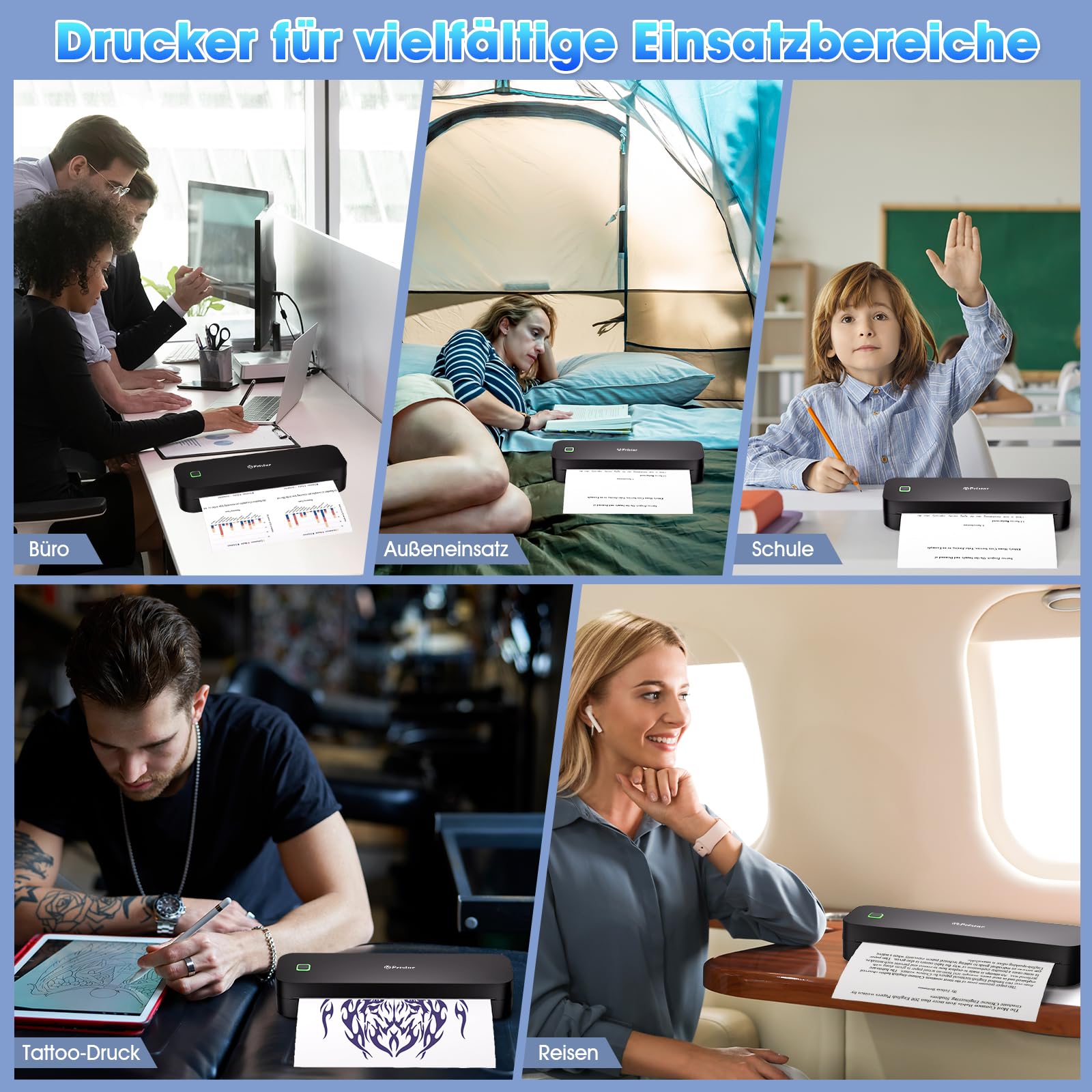 Versatile applications: The D210 wireless printer supports formats such as Word, Excel, PPT, TXT, and JPG. Whether in the car, at home, outdoors, or while traveling - print contracts, lists, invoices, labels, or necessary documents anytime. In addition, the D210 thermal printer is also compatible with tattoo transfer paper and meets the requirements of tattoo art lovers.