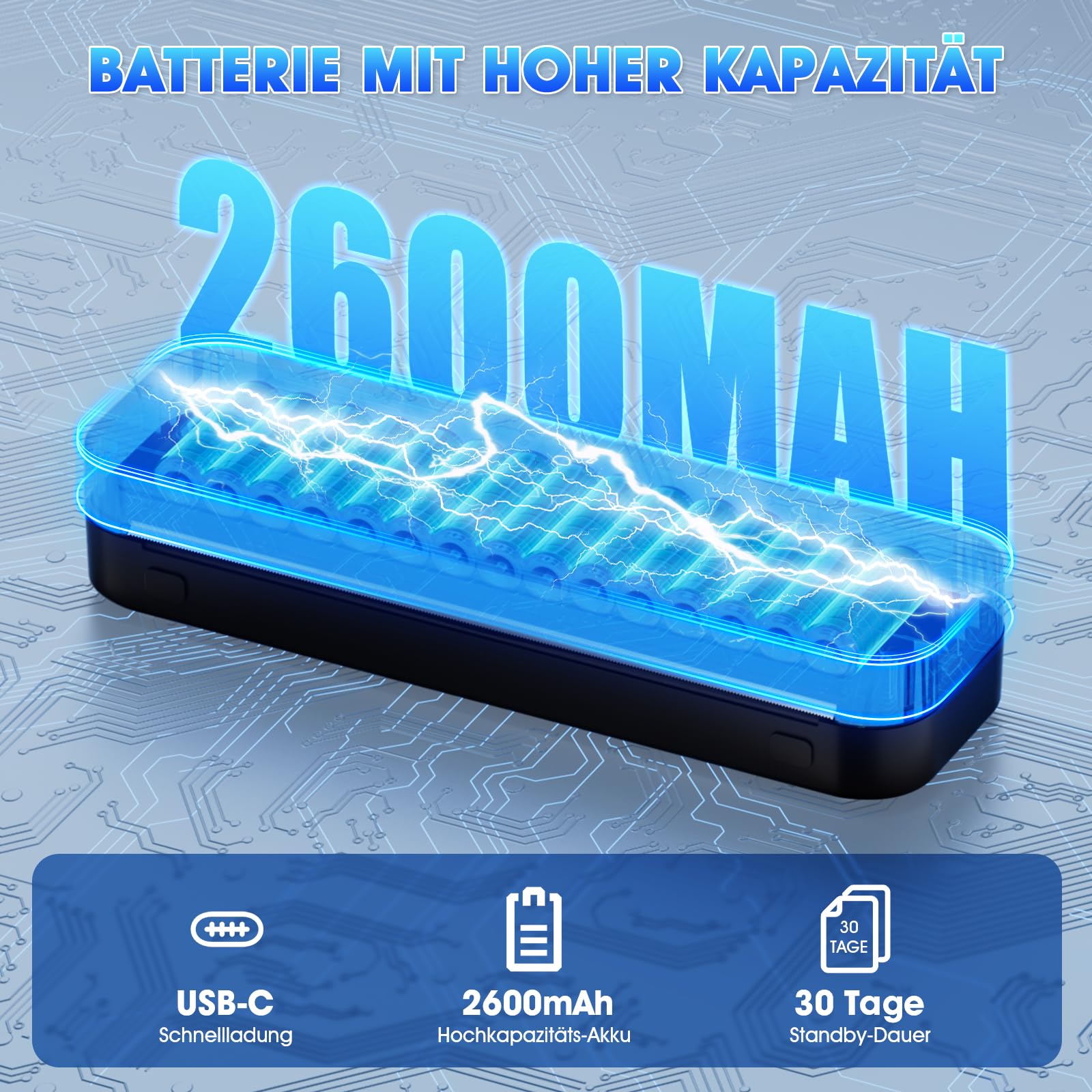 "Portable & long lasting battery: This portable A4 thermal printer is compact and weighs only 700 g. It can easily be carried in a backpack or briefcase. The D210 portable printer has a 2600 mAh rechargeable lithium battery that allows up to 2 hours of continuous operation and 360 sheets of printing per charge. With a standby time of up to 30 days, this mobile A4 printer is your essential companion when traveling.