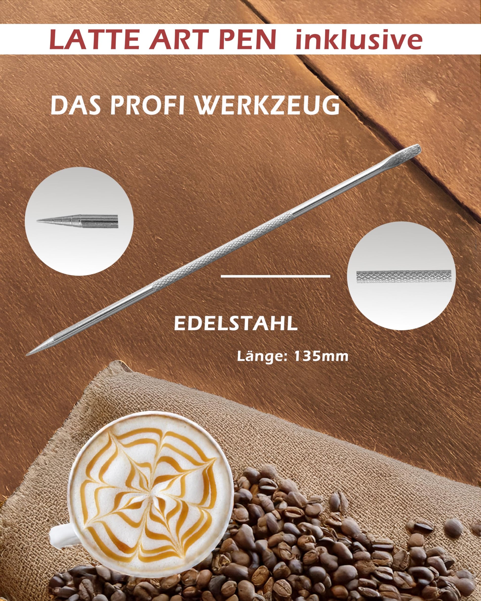 "✅ HIGHLIGHT - packaged in a gift box, the jug / coffee pot comes with a stainless steel LATTE ART pen. This pen allows for perfect latte art creations",