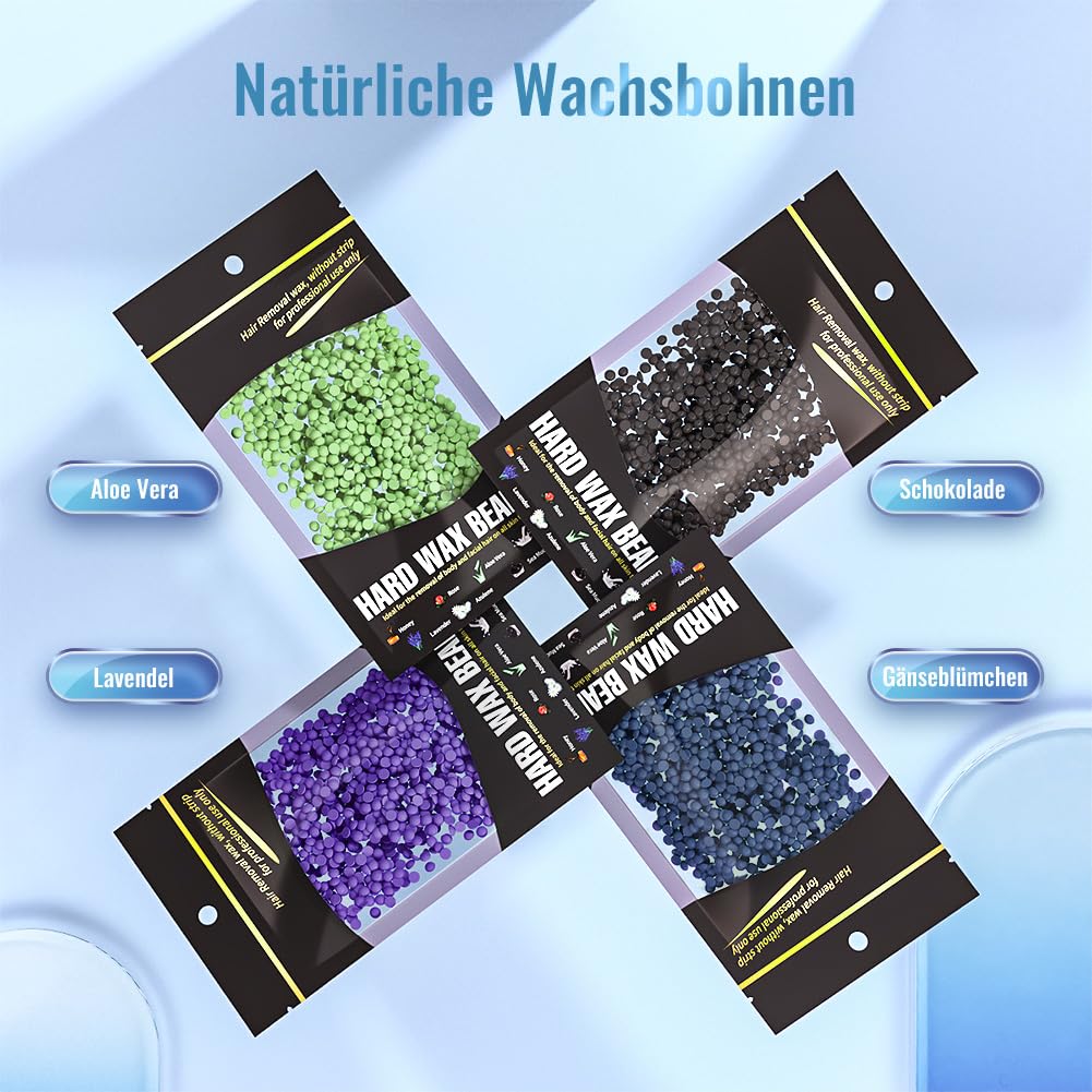 ["Silicone material: Unlike traditional aluminum cylinders, the improved silicone cylinder is very easy to clean and can be peeled off in one piece only after the wax has hardened","500ml Large Capacity: This wax machine removes unwanted body hair from arms, armpits, bikini area, and legs, leaving a clean and shiny skin feeling","Touch Screen: Simply touch +/- to adjust the temperature. The setting range is between 35 and 125 °C","Complete hair removal: The package includes a wax machine, 400g wax beans, and 20 wooden sticks. It can be used immediately after purchase","Special color: Exclusive mint green provides a refreshing feel. Suitable for personal use or sharing with your loved ones. Own a beautiful and functional small home decoration"]
