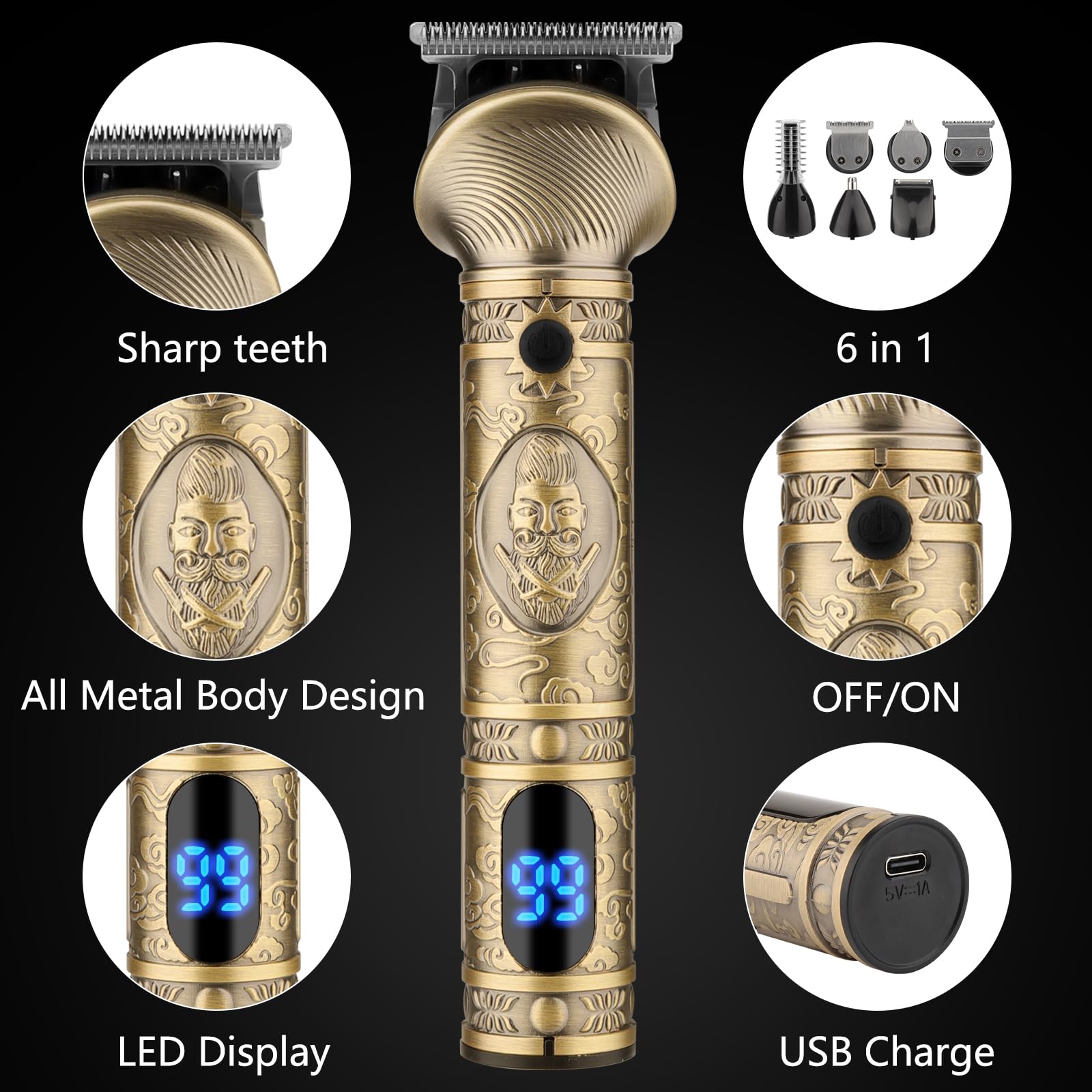 High-Quality Stainless Steel Blades: Men's hair trimmer with high-quality sharp blades, do not pull on your hair or hurt your scalp, easy to create different hairstyles. The T-blade is perfect for precise cutting of beard and sideburns.