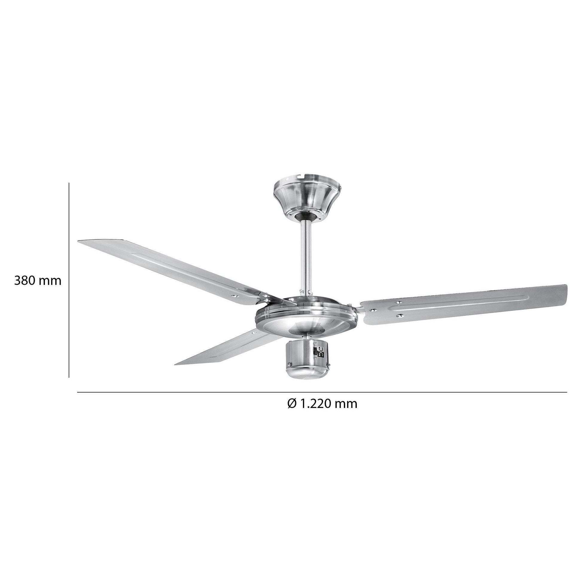 ProfiCare ceiling fan PC-DVL 3071, 3-blade fan for rooms up to 25 m², 4 power levels, reverse function for summer and winter operation, 122cm diameter, 60 watts, stainless steel.
