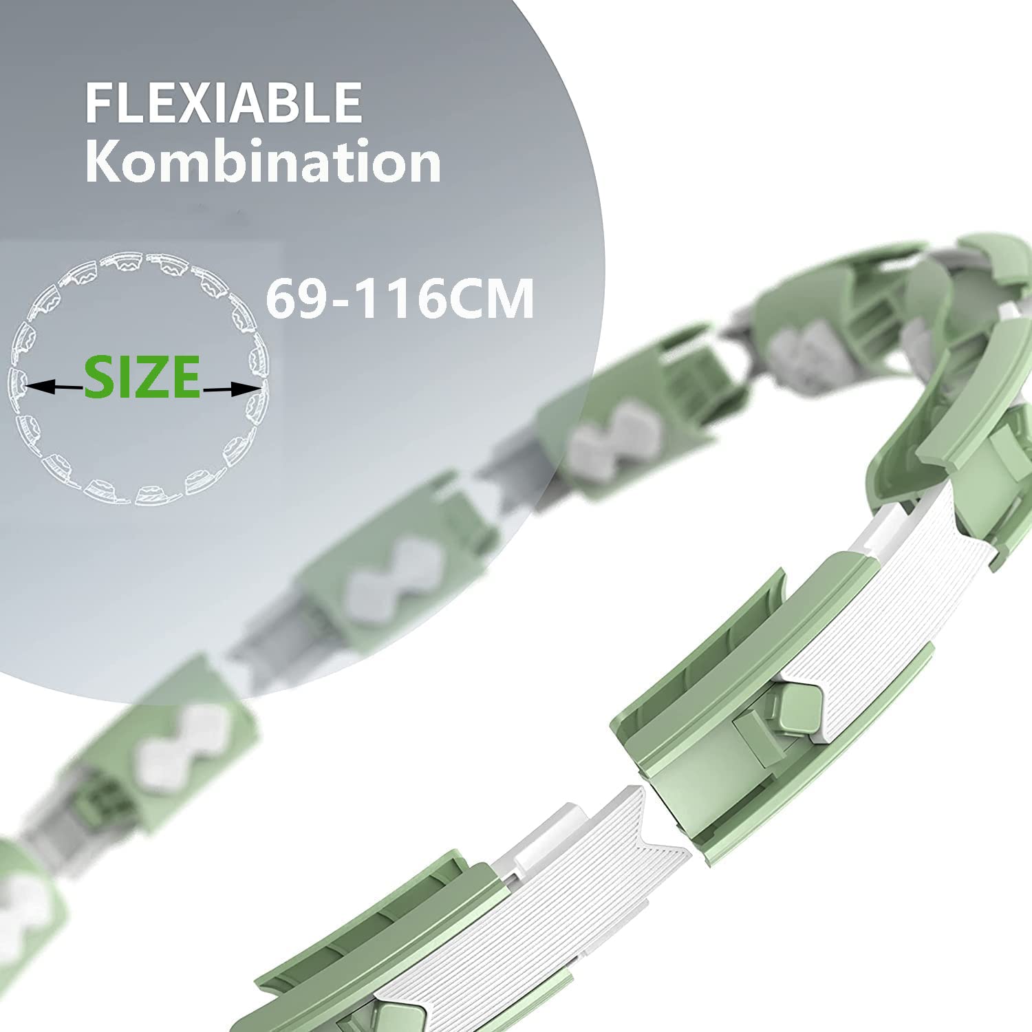 ["✅EASY TO USE AND DOESN'T FALL OFF: The smart Hula Hoop hoop is easy to use. Compared to traditional Hula hoops, the fitness hoop does not fall off, solving the problem that beginners may have. Each connecting segment contains soft massage heads that provide a 360° comprehensive massage effect, doubling the fitness benefits.",