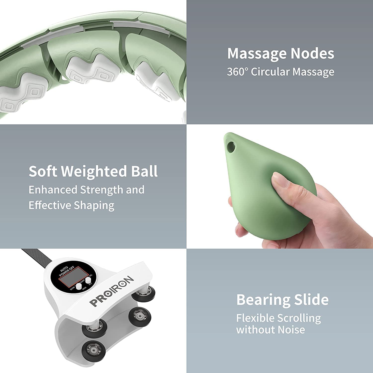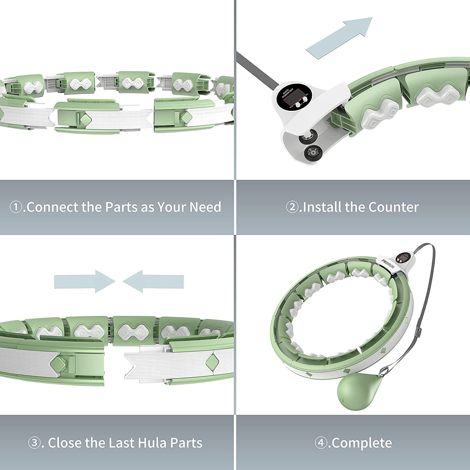 PROIRON Smart Hula Hoop for Adults, Hula Hoop with Weighted Ball, Hoola Hoop for Beginners to Lose Weight, 16 Quick-Release Segments (Green)