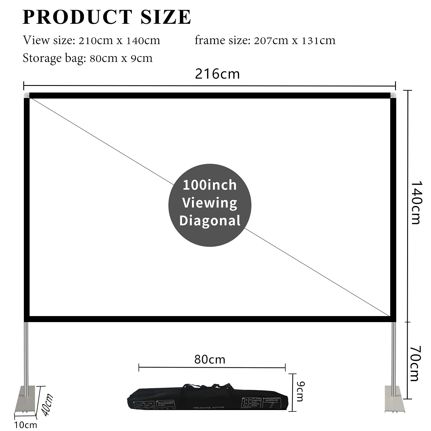 Projection screen with stand 100 inch HD 4K Outdoor Indoor Projector Screen Quick Folding Portable Movie Screen 16:9 Full Set Bag for Home Cinema, Camping, and leisure events