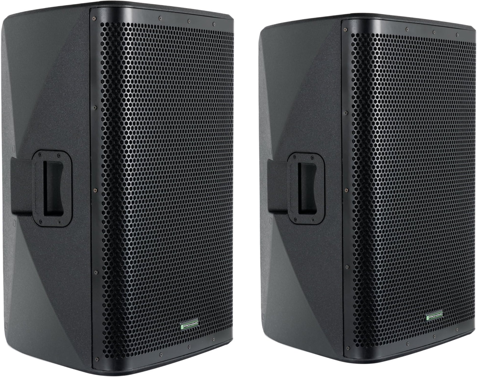 Pronomic C-215 MA Stereo Set - Two active 2-way speakers - Power: 2000 watts - 15" woofer + 1.75" tweeter - Bluetooth receiver and DSP presets - Plastic housing with monitor tilt angle.