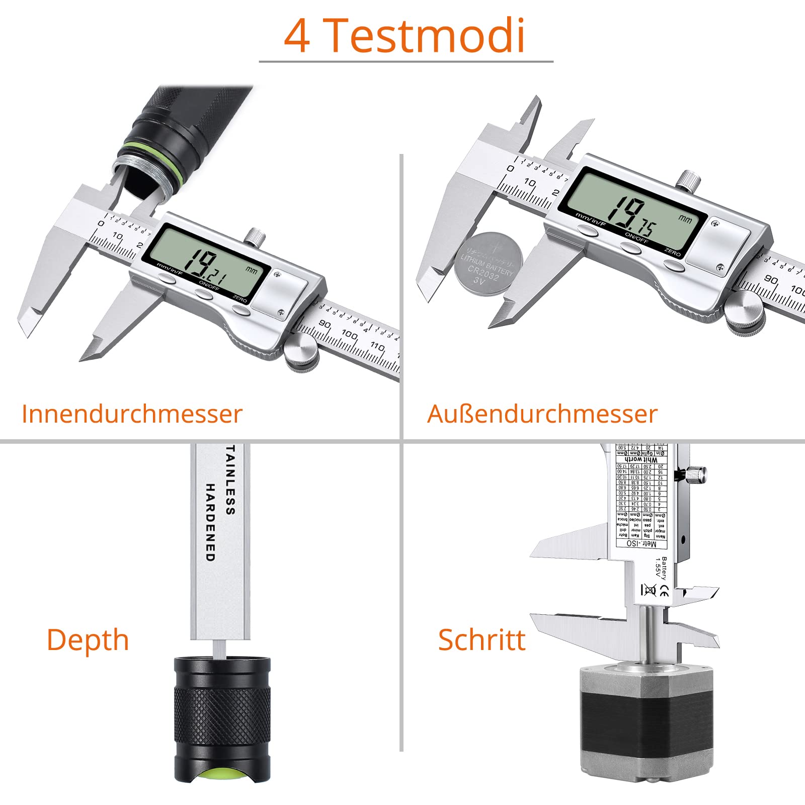 ["【Vernier Caliper】 --- Proster Digital Caliper comes with 3 measuring modes, supports Inch/Metric/Fraction conversion. With 2 sets of jaws and probe, can quickly and efficiently measure inside, outside, depth, and step measurements. Extra large LCD display on the digital caliper makes it easy to read measurements clearly.",