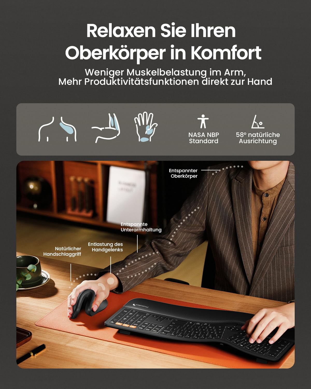 ["【Warm Reminder】The ProtoArc EM11 NL vertical Bluetooth mouse is recommended for small to medium-sized hands (hand size: <6.89in and 6.89in-7.48in are suitable). Mouse dimensions 5.43*2.72*2.68in (13.8*6.9*6.8cm). For a more comfortable fit and better user experience, we recommend measuring your hand size before purchasing (for right hand only)","【Ergonomic Design and Enhanced Comfort】The ergonomic wireless mouse features an extended wrist rest that fits perfectly to your palm, allowing a more natural and relaxing position for your wrist and forearm. This design helps reduce the risk of injuries from repetitive strain and muscle tension in your arms, ensuring comfort throughout the day","【Connect Up to 3 Devices】This ergonomic wireless mouse (not a professional gaming mouse) offers both BT 5.0 and 2.4G USB dual connection modes, allowing you to connect up to 3 devices simultaneously. Switching between devices is done by simply clicking the mode switch button. Compatible with Windows 8, Windows 10, macOS 10.12 or later, and Android 4.3 or later","【Rechargeable Battery】The vertical Bluetooth mouse is equipped with a 500mAh Li-ion battery that is charged with the included Type-C cable. After 30 minutes of inactivity, the mouse automatically enters sleep mode to save energy, and can be easily awakened by a simple movement. The low battery indicator reminds you to charge the mouse when the red light flashes","【Adjustable DPI and Convenient Features】Our ergonomic wireless mouse features convenient forward/backward buttons for easy browsing. The DPI levels 1000/1600/2400 offer higher sensitivity than traditional optical mice, allowing for precise optical control. (Note: All buttons are not programmable and the forward/backward buttons are not compatible with Mac OS systems)","【Quiet Click Sound】The whisper-quiet clicking of our vertical mouse helps you focus on the task at hand without being distracted by noise. Therefore, it is perfect for shared workspaces such as offices or libraries (only the left and right button are muted, side buttons and scroll wheel are not silent)","【Note:】We understand that some customers may feel uncomfortable when using our ergonomic mouse for the first time. It is important to know that transitioning to an ergonomic design may require some time to adjust. You may need to get used to a new grip and positioning. We recommend taking 1-2 weeks to adjust, as many users find that the comfort and support significantly enhance their overall experience. If you still feel uncomfortable, feel free to contact us."]