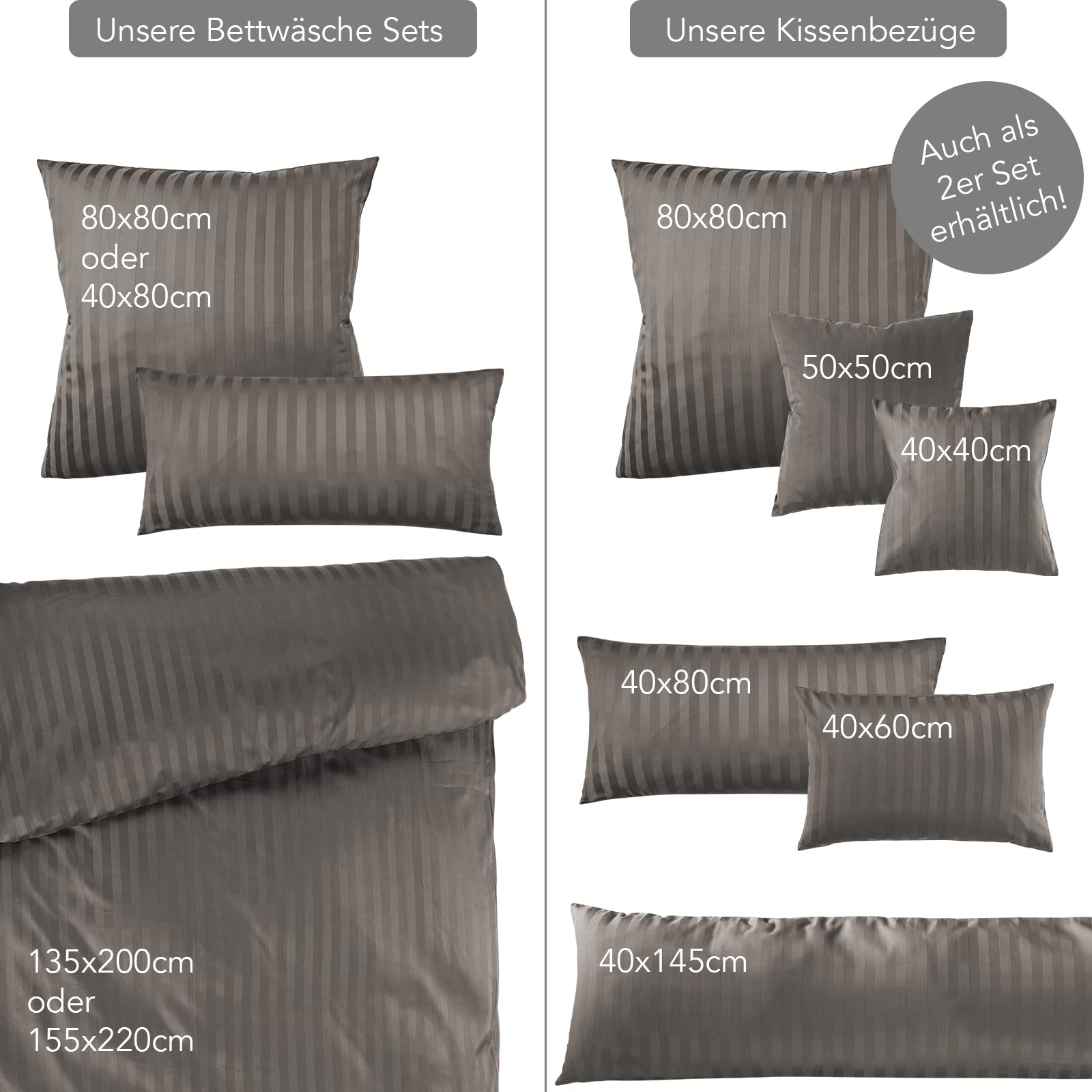 Pure Label 2-Pack Mako Satin Damask Stripe Pillowcases 40x40 cm made of 100% cotton in Taupe| Incredibly soft decorative pillows that match our bed linen sets.
