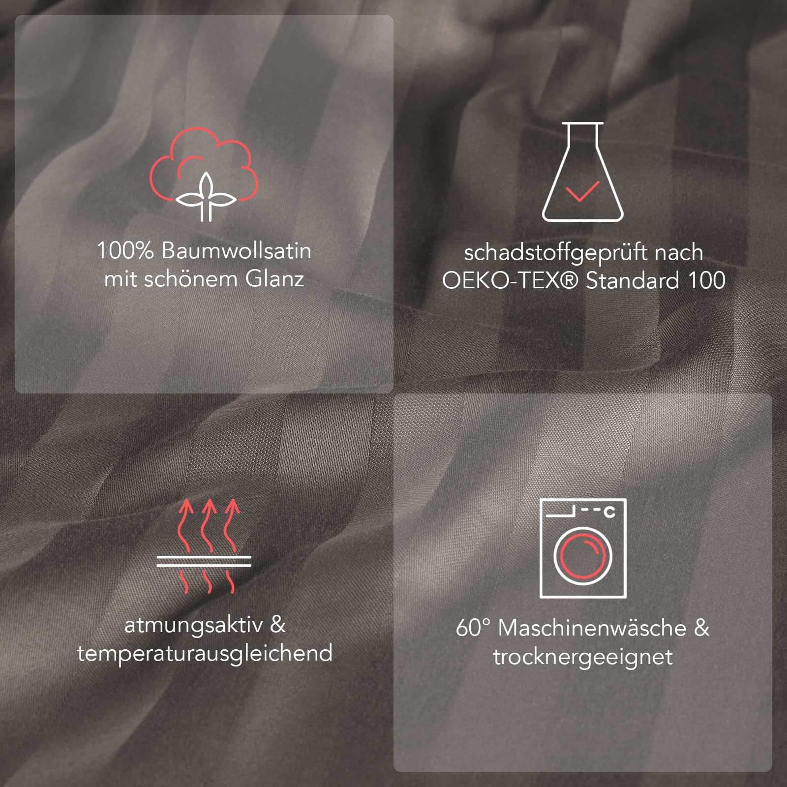 1, 2, 3 READY - Putting on and taking off the decorative pillows is a breeze with our pillow covers made of Mako satin. All duvet covers and pillowcases are practically wrinkle-free and equipped with a durable, color-coordinated YKK zipper from the quality brand.