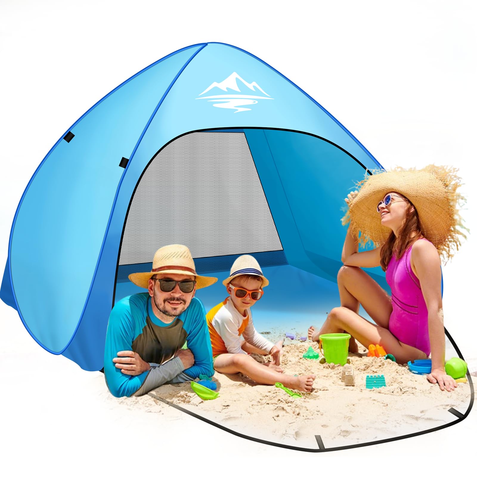 Purebox Beach Shelter Pop Up 3-4 Person Models, Pop Up Beach Shelter with UV Protection, UPF 50+ Beach Tent, Automatic Portable Beach Tent Pop Up Tent for Family Camping Garden Beach 240x200x135cm