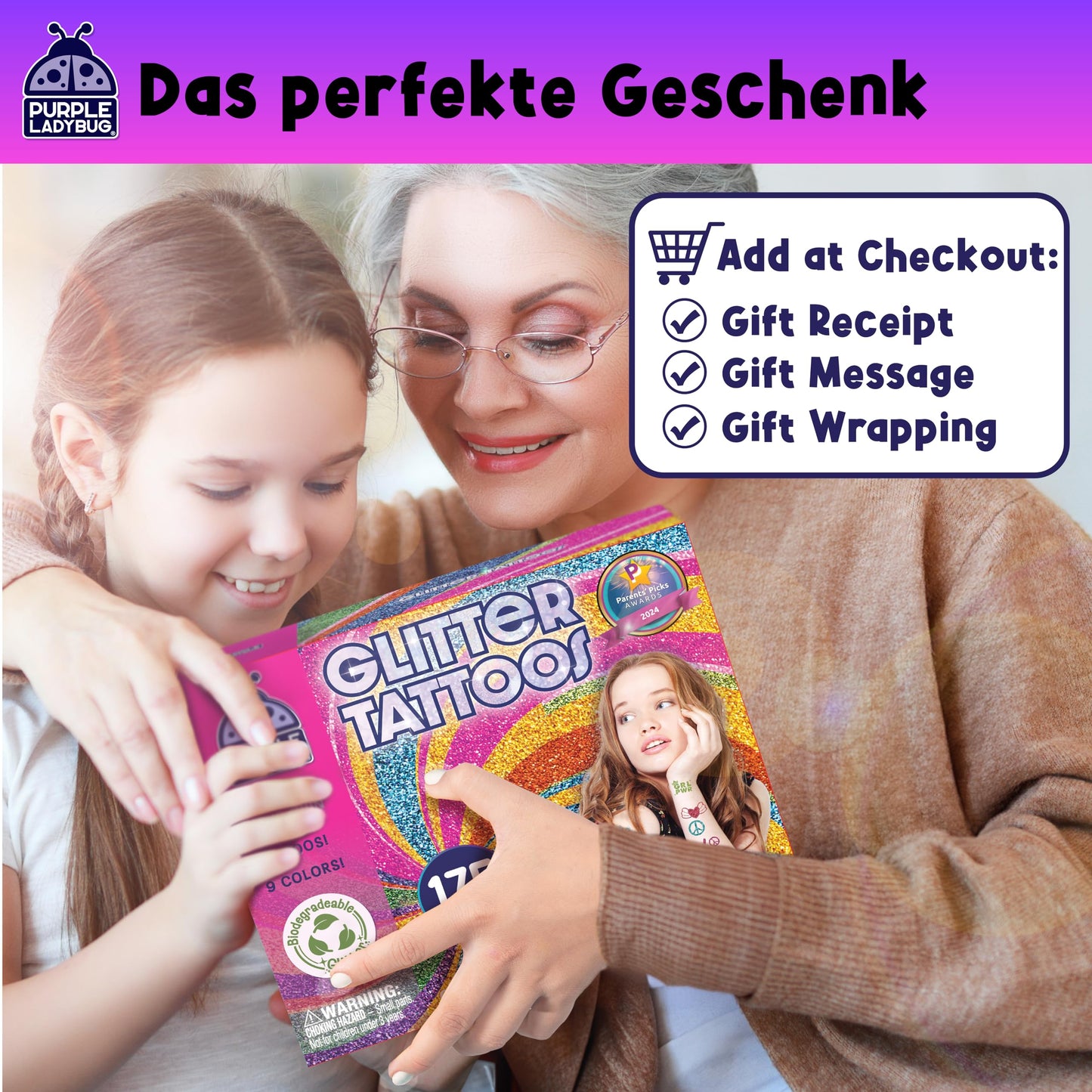 "Perfect gift for girls: Whether for birthdays, Christmas, Easter, or as a present - this tattoo kit is a popular gift for girls aged 6-12.",