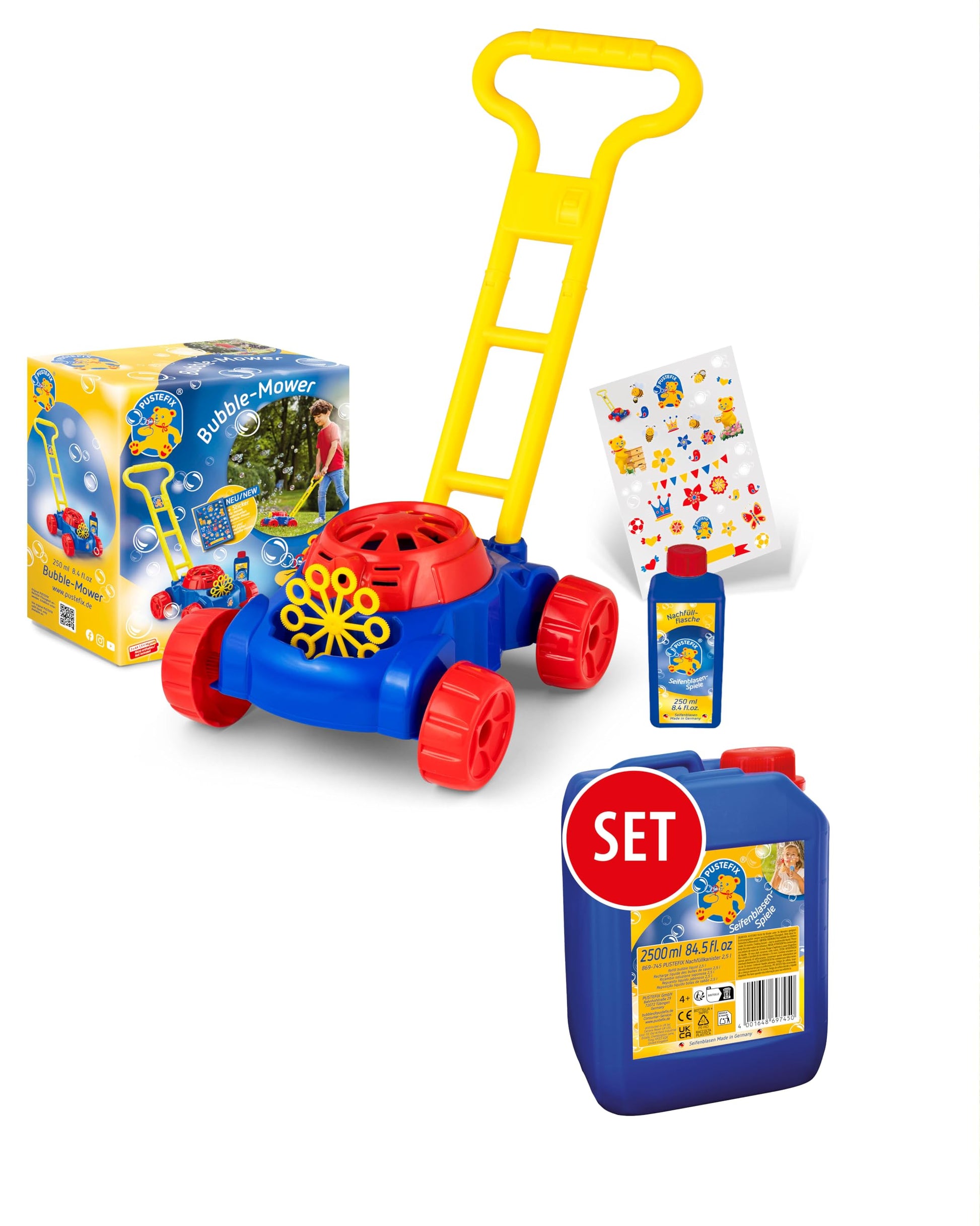 PUSTEFIX Bubble-Mower Lawn Mower & 2.5L Refill Canister I Fun Bubble Kids Set with Bubble Solution I Especially lots of Colorful Bubbles