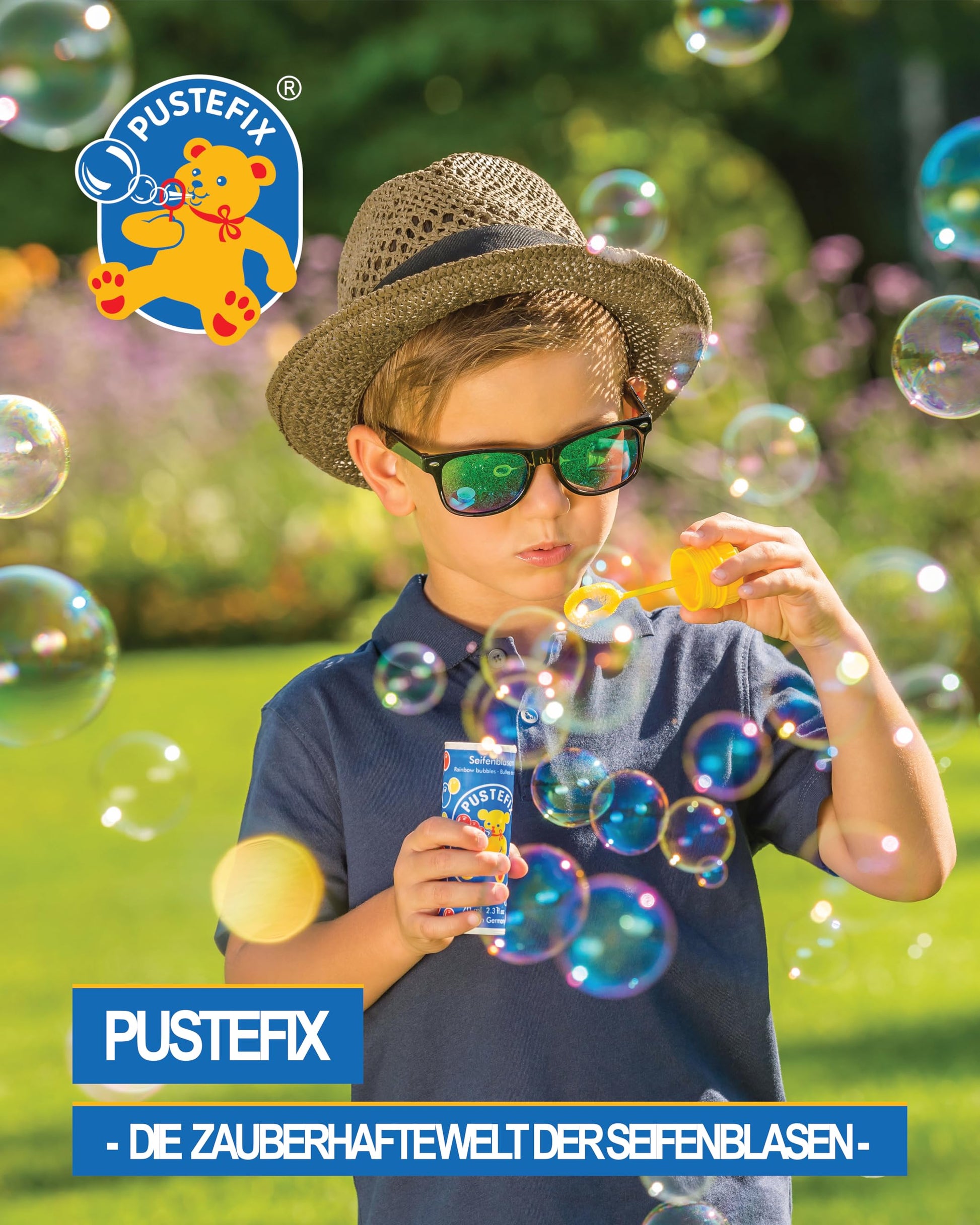 ["UNIQUE DURABILITY: Thanks to the special formula of PUSTEFIX soap liquid, you can blow more bubbles, they are more colorful, last longer, fly farther & pop later. The soap bubble trumpet is perfect for colorful parties.", "EASY APPLICATION: Making soap bubbles yourself? Not necessary thanks to the conveniently bottled PUSTEFIX soapy water. Just blow once & create many soap bubbles!", "VARIED GAMES: Shimmering surfaces, aesthetic shapes & interesting colors fascinate not only the youngest. Explore the exciting PUSTEFIX game ideas & uses.", "SOAP BUBBLE SET: With the included refill canister, you can continue to delight at birthdays, summer parties, or bachelor parties with the amazing trumpet.", "PUSTEFIX: As the soap bubble specialist, we have been standing for experience, quality, environmentally friendly formulas & the reliable safety of our soap bubble games for over 70 years."]