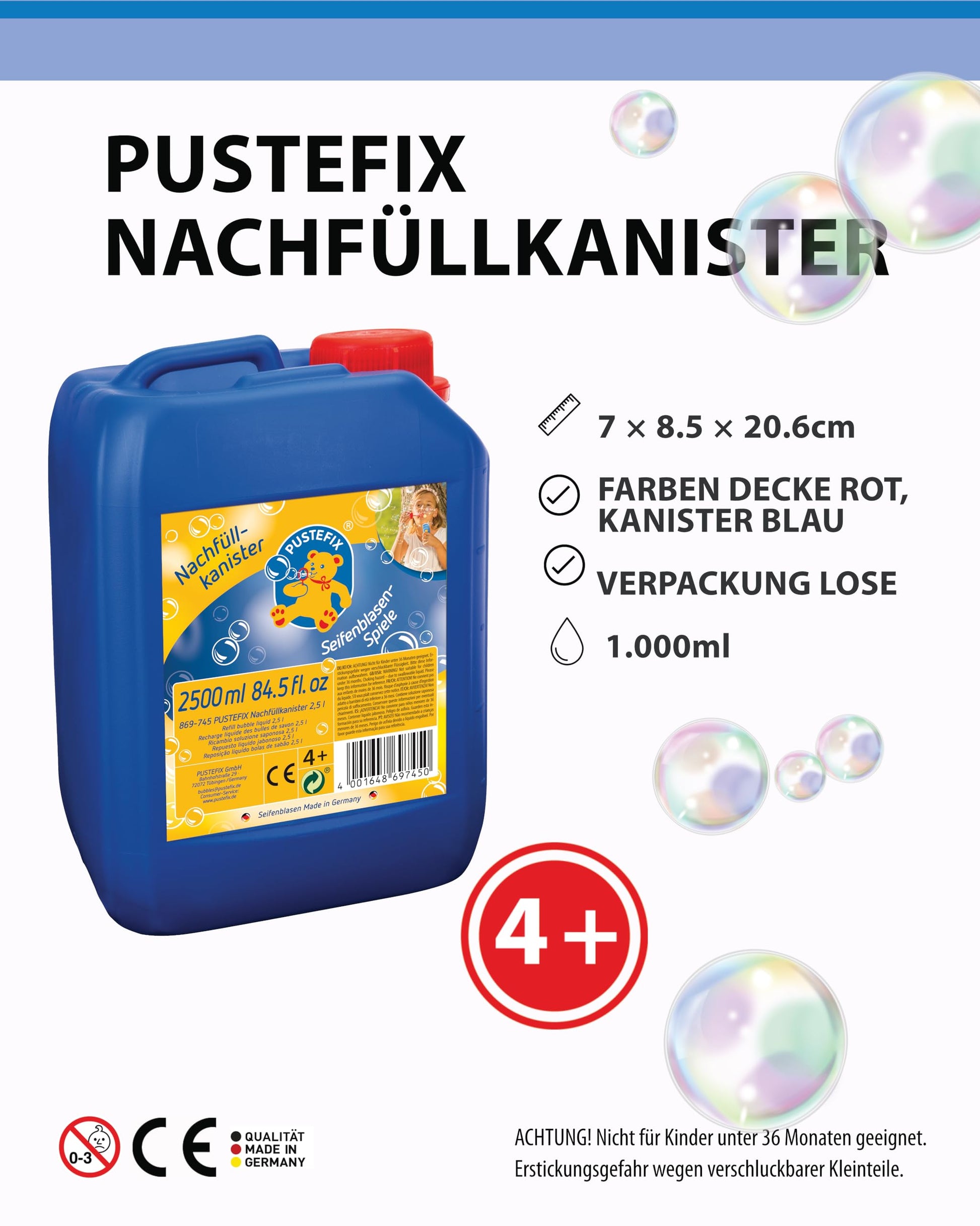 PUSTEFIX Multi-Bubble Trumpet + 2.5L Refill Canister of Bubble Solution I Colorful Bubbles Made in Germany I Bubble Toy for Kids' Birthdays, Weddings I Fun for Kids & Adults