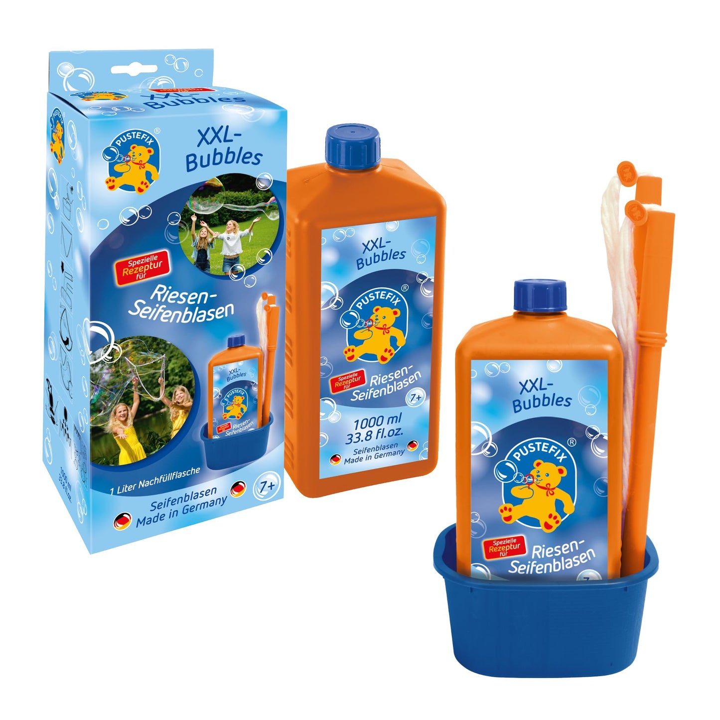 PUSTEFIX XXL-Bubbles + refill bottle Maxi 1 liter I Bubble solution and accessories I Colorful bubbles Made in Germany I For weddings, children's birthdays, civil ceremonies, bachelor parties I Giant bubbles