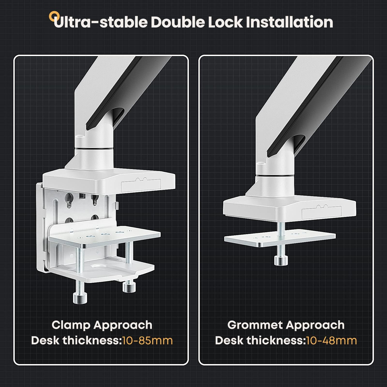 PUTORSEN Monitor Desk Mount - Heavy Duty Premium Aluminum Swivel Tilt Height Adjustable Single Arm Monitor Holder for 17"-49" LED LCD, VESA 75x75-100x100mm Supports up to 18kg-White