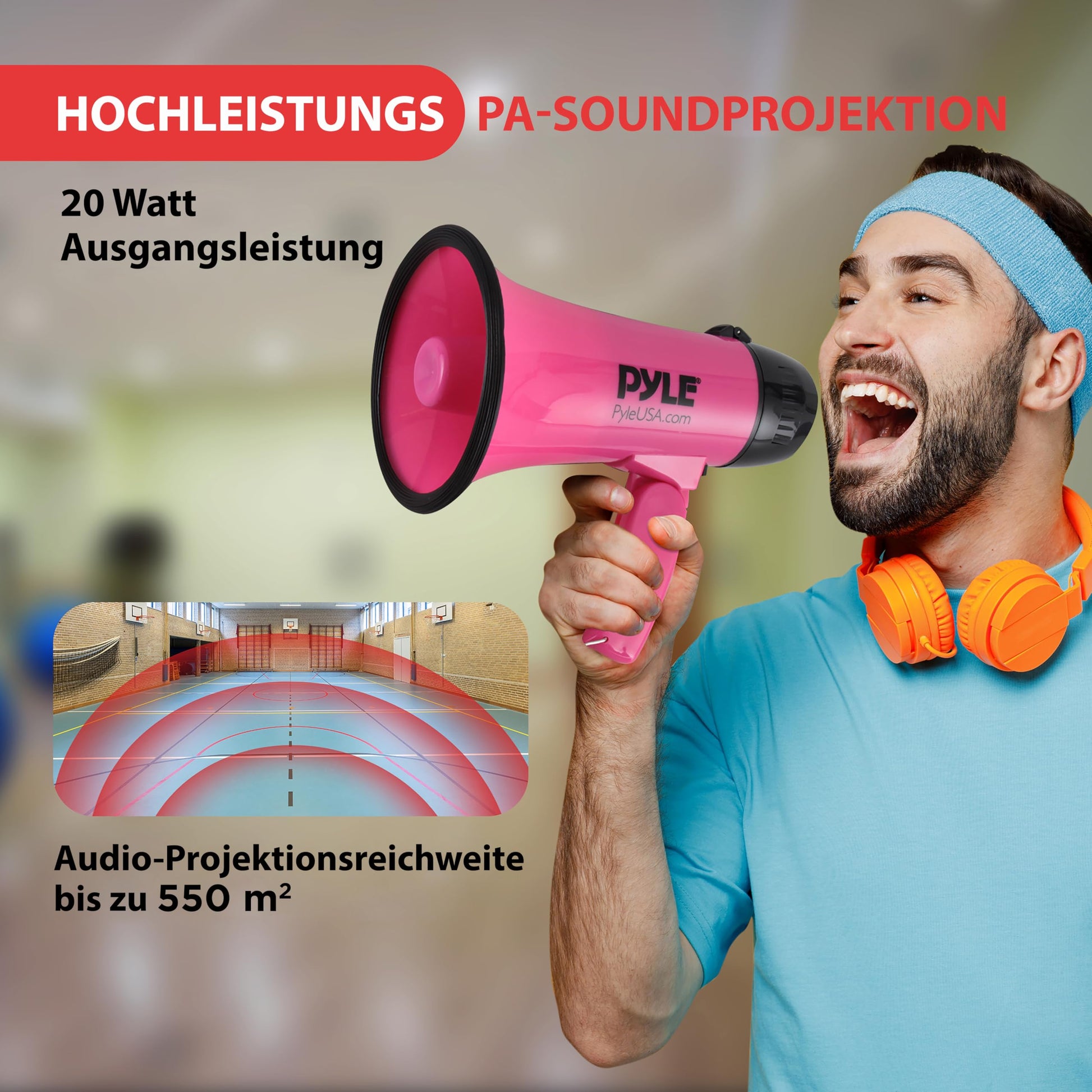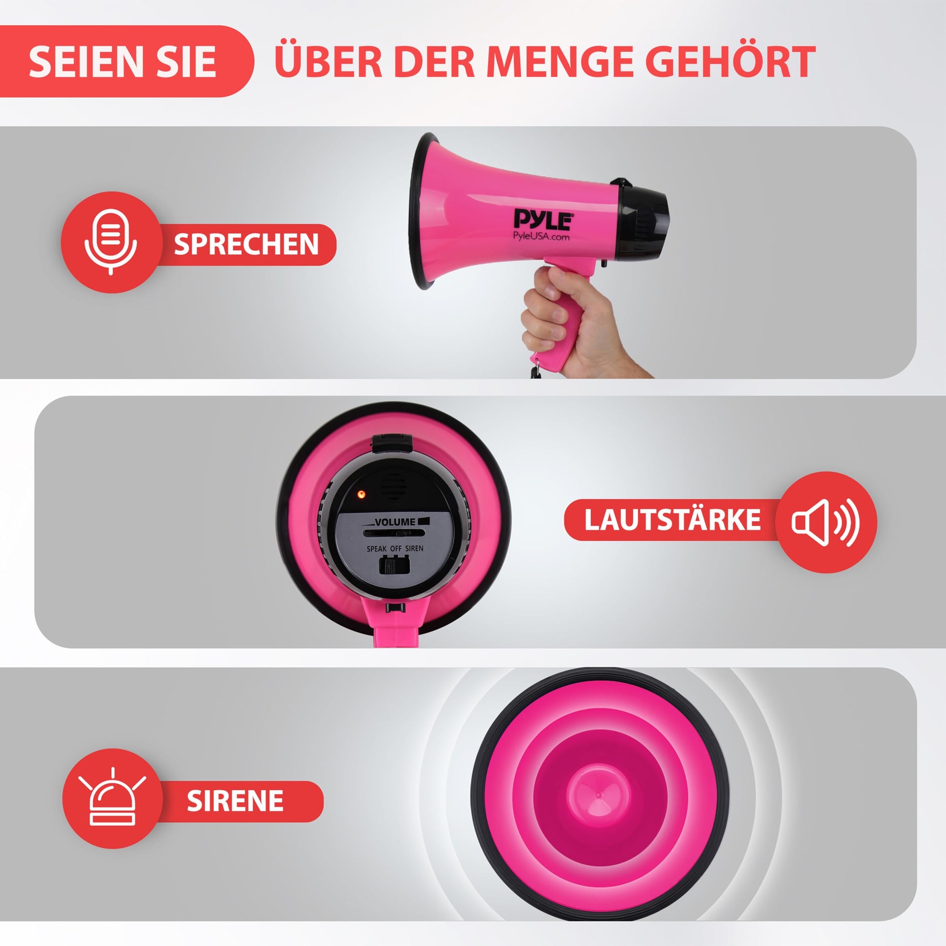 Pyle Megaphone with Siren, Signal Horn - Siren Megaphone - Mini Megaphone for Kids & Adults 20W, Foldable Megaphone with Siren & Microphone, Adjustable Volume & Battery Operated Range: 550m