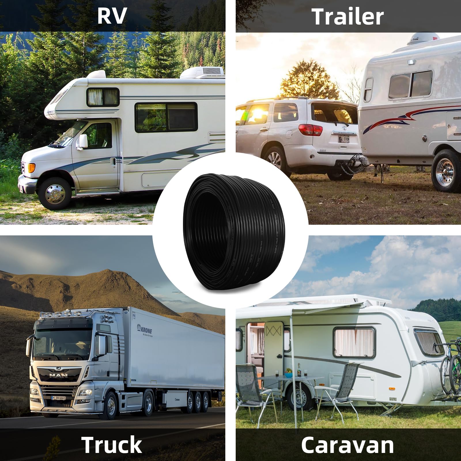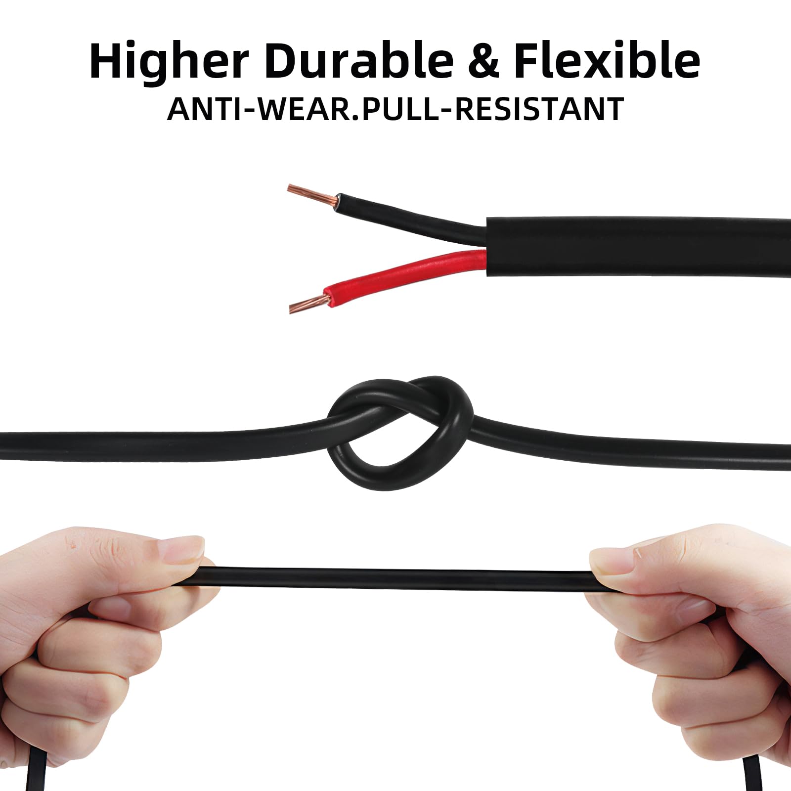 ["Anhängerkabel, Length: 65.6 ft, Conductor Cross-section: 0.75 mm², Voltage: 12/24 V, suitable for agricultural vehicles, technical vehicles, motorhomes, golf carts, off-road vehicles, etc.","Utilizes black/red 2-core cable, Copper conductor material, easy to strip, provides high durability, flexibility, and long lifespan, ensuring better driving safety.","Can be used in trailer extension cables, extension cables for trailer taillight sockets, car wiring devices, car audio, outdoor lighting, electrical connections, and other low-voltage and low-current scenarios.","Insulation material: PVC, Operating temperature: -40°/+85°C, product has passed relevant tests, flame retardant, waterproof and moisture resistant, shockproof and wear resistant, corrosion resistant, and not easily damaged.","If you have any questions about the product, feel free to contact us. We will respond as soon as possible and provide a good solution to ensure your shopping experience."]
