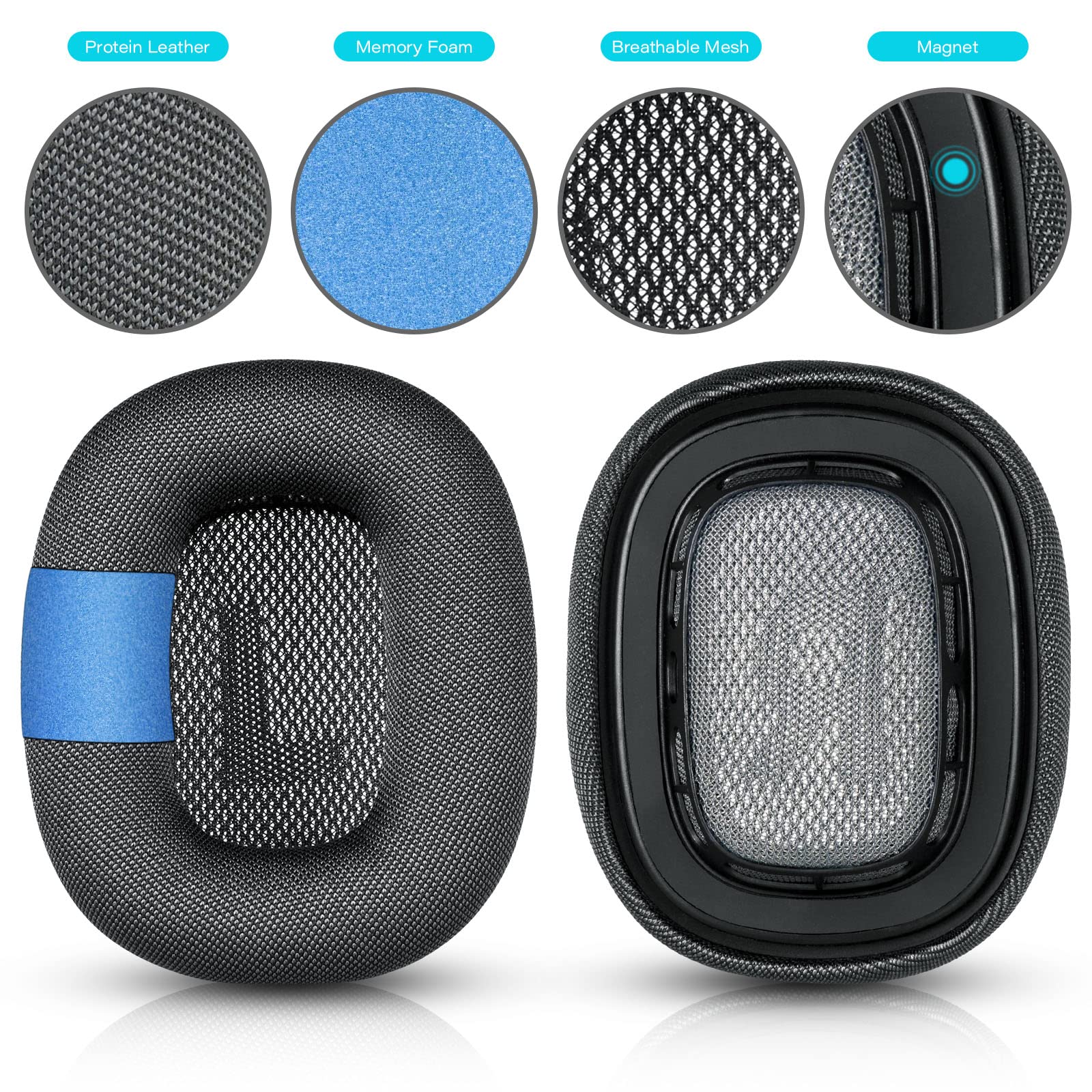 QKIIP Airpods Max Earpads, replacement earpads for AirPods Max headphones, featuring knit mesh canopy and memory foam, compatible with Apple Airpods Max Noise Cancellation Over-Ear Headphones (Space Gray)