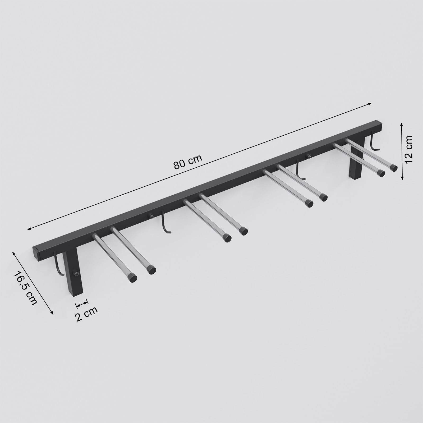 QLS Trading Ski Rack S3 Wall Ski Rack for 4 pairs 83 cm Nordic Walking Trekking Poles Ski Carrier Hook Rail with protective rubber coating for space-saving storage
