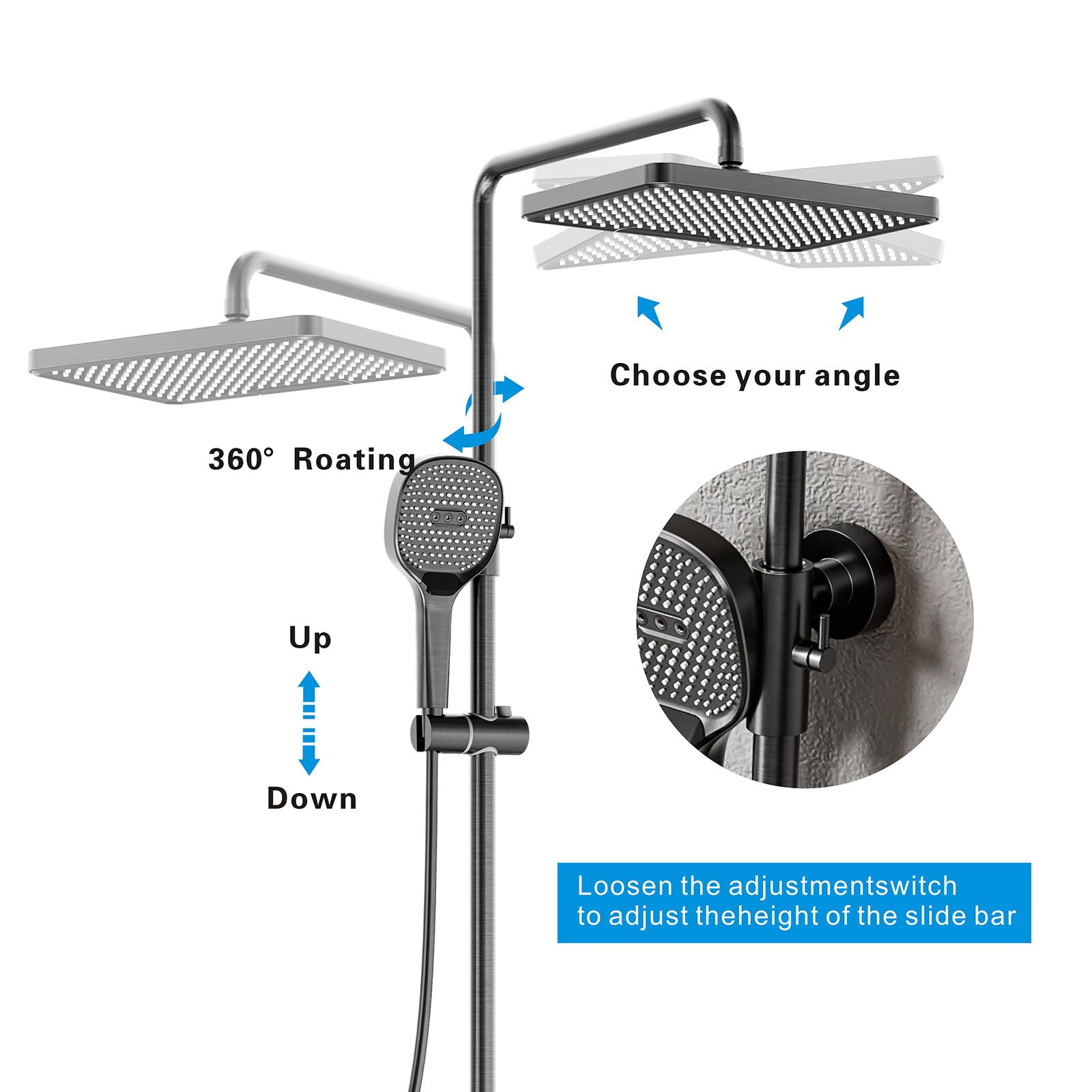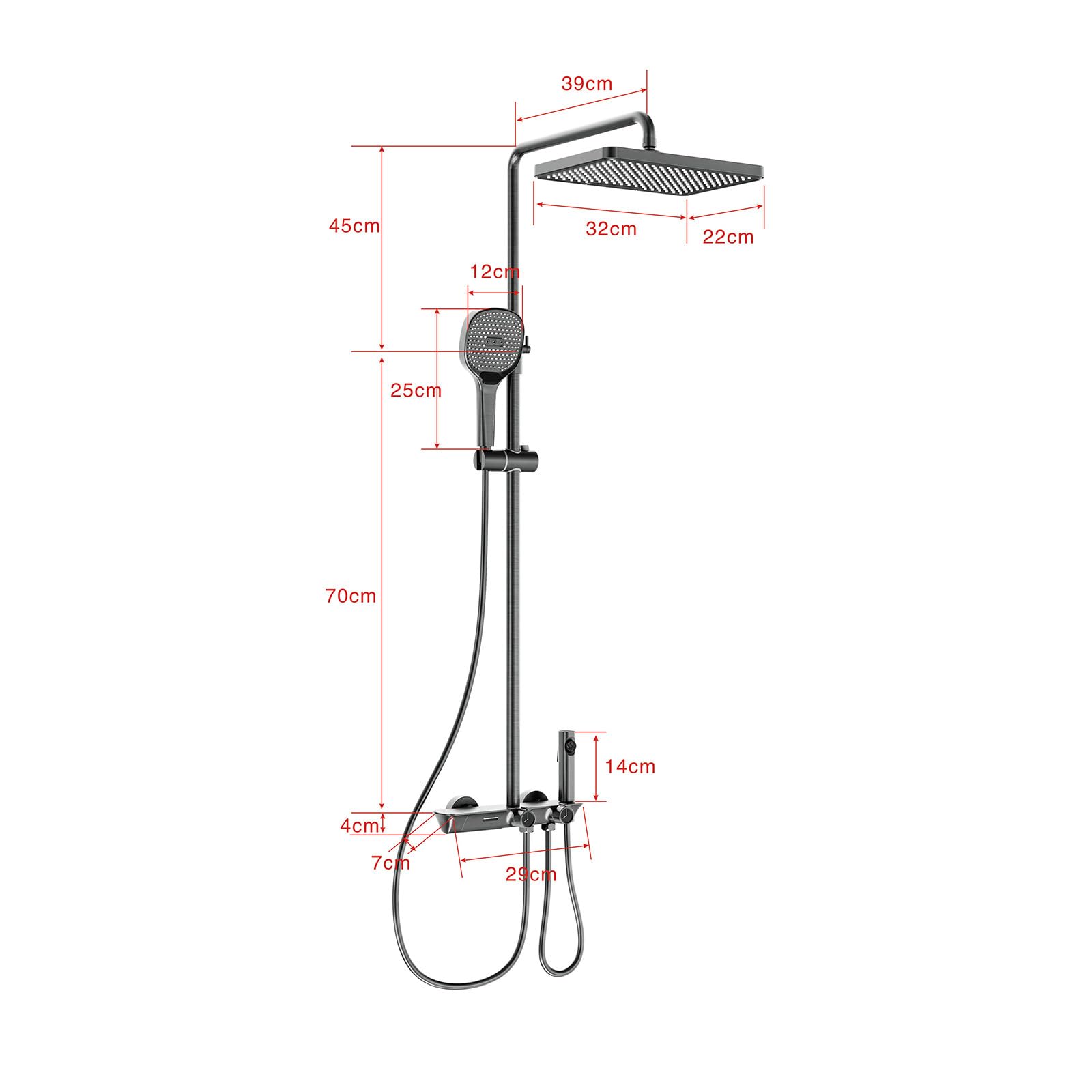 QREZAA Shower System with Thermostat, Featuring 32 X 22cm Rain Shower Hand Shower Bidet Sprayer Bathtub Faucet, Adjustable Shower Column, Wall Mount Shower Set, Thermostat Brass Valve (Gray)