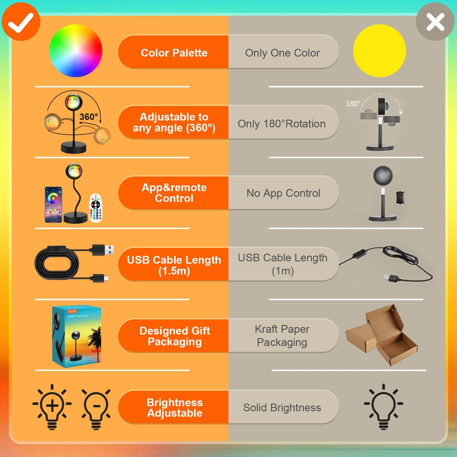 "【Stable and Durable】The sunset light is made of high-quality aluminum. Energy-saving, corrosion-resistant, rust-proof, stable, and highly durable. We hope you like the night lights. Make it a gift for your family and friends."]