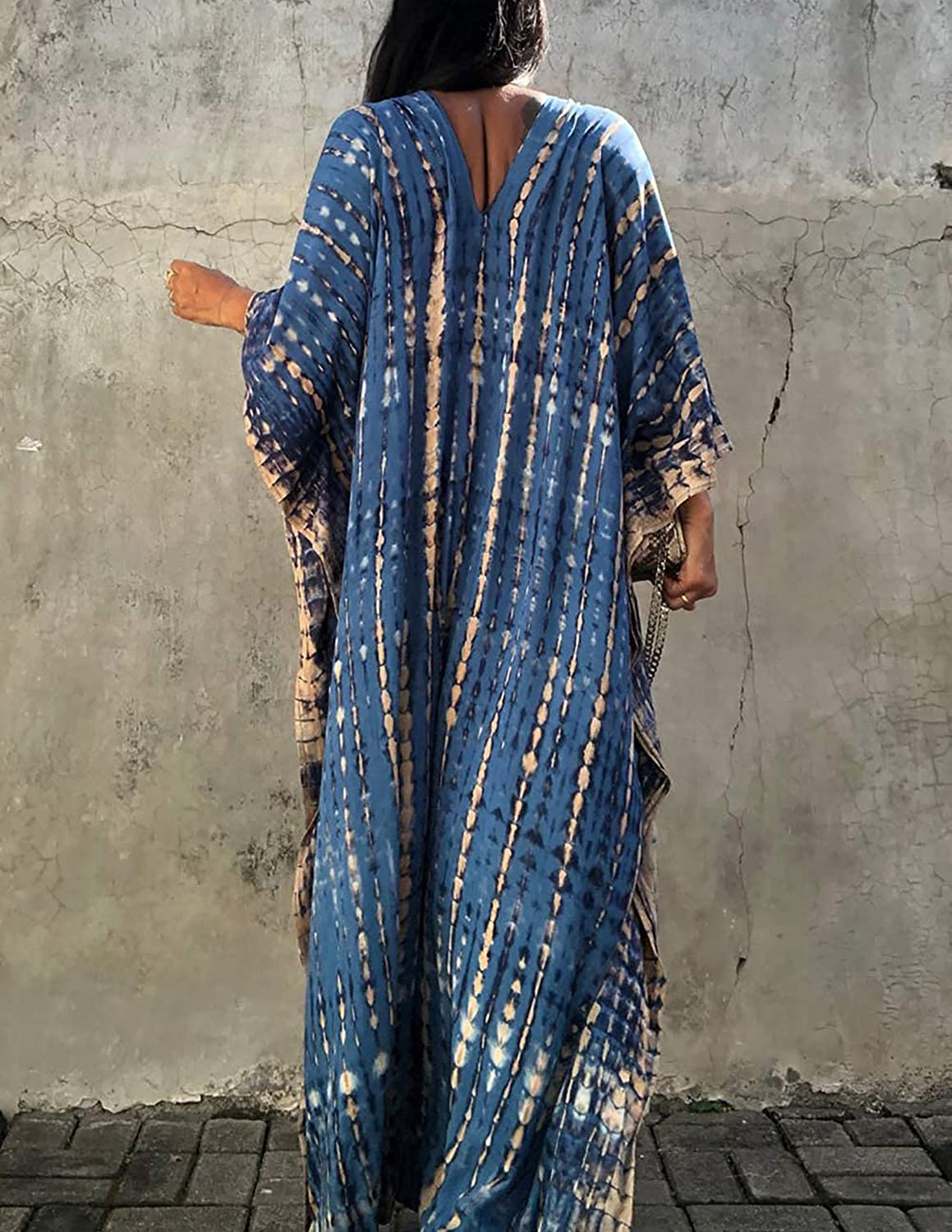 QUNERY Women's Beach Dress Elegant Long Bikini Cover Ups Beach Poncho Print Loose Kaftan Smock Summer Maxi Dress (Brown)