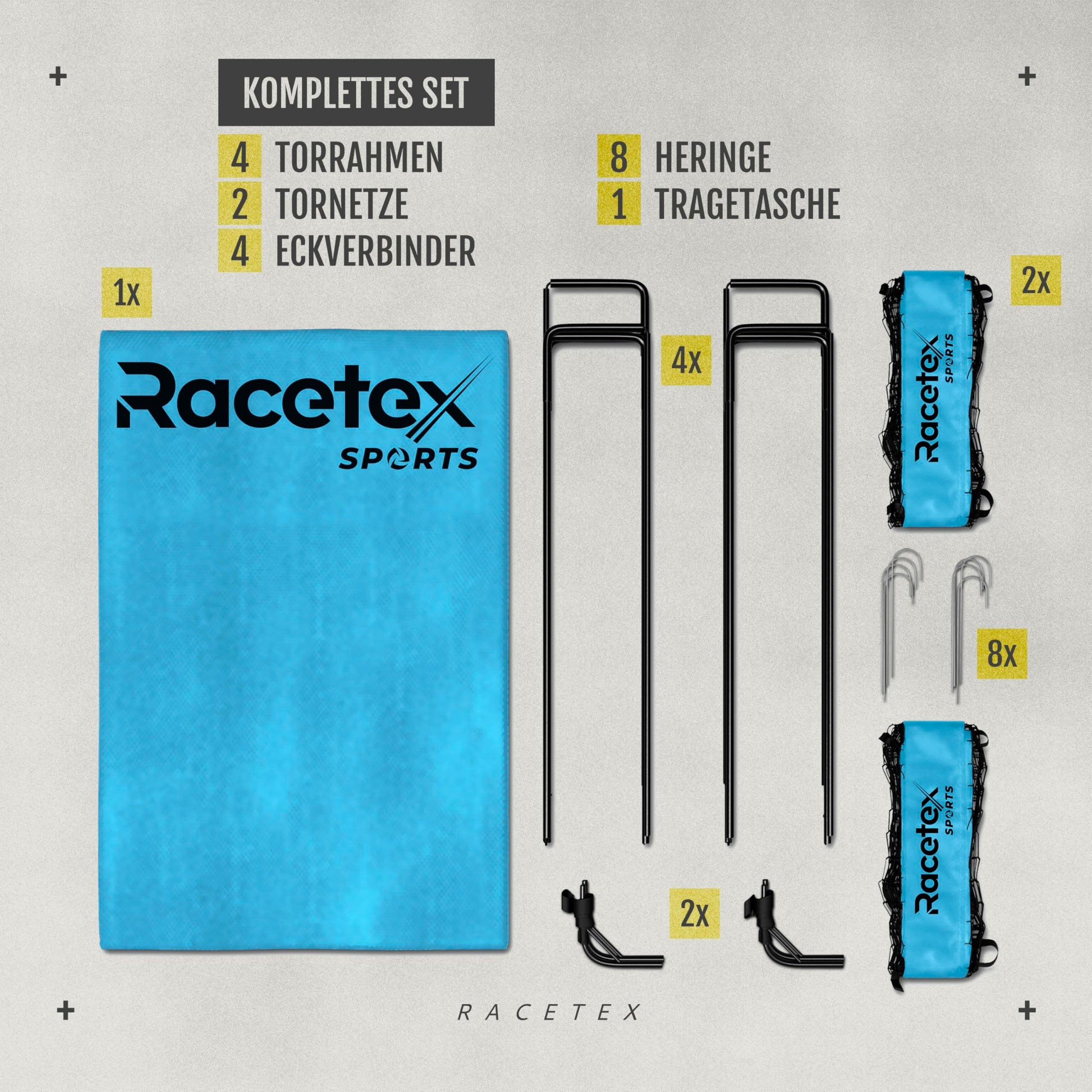Racetex 2-piece soccer goal set for kids - soccer goals including handy carrying bag - version with reinforced fiberglass poles - soccer goals for the garden or park.