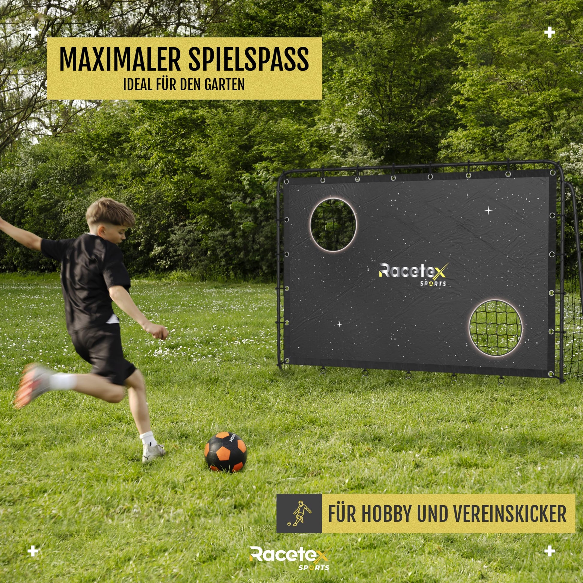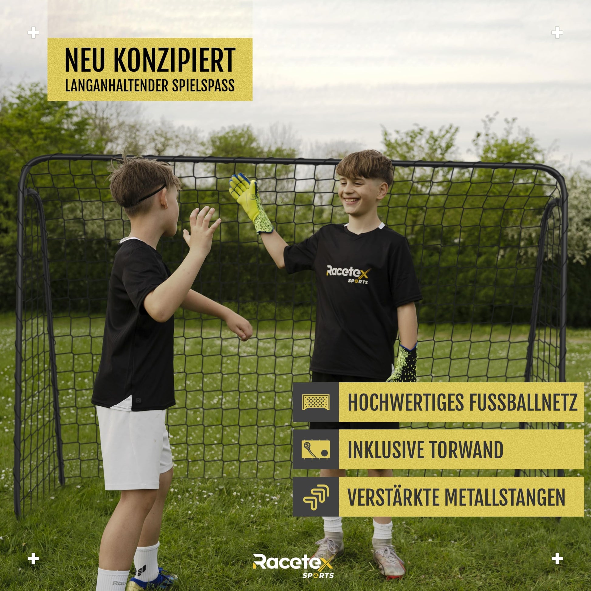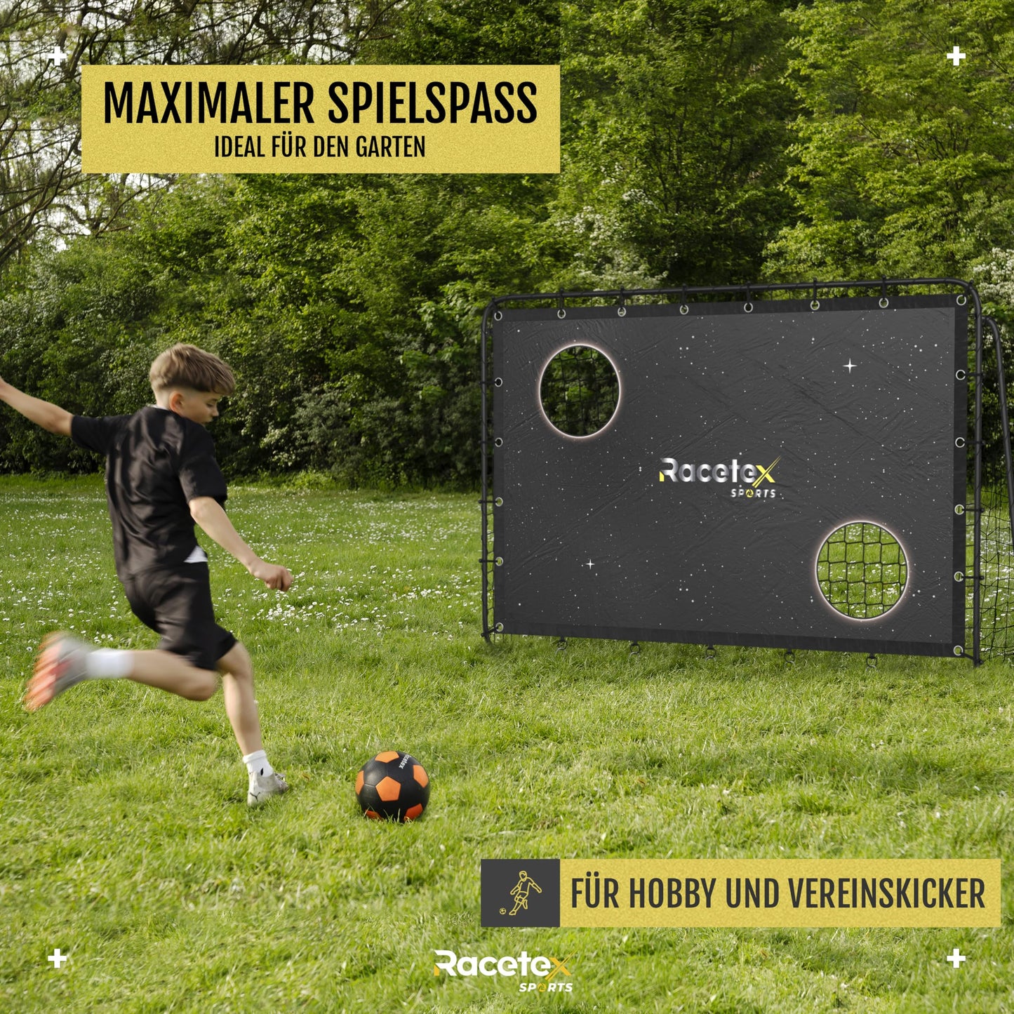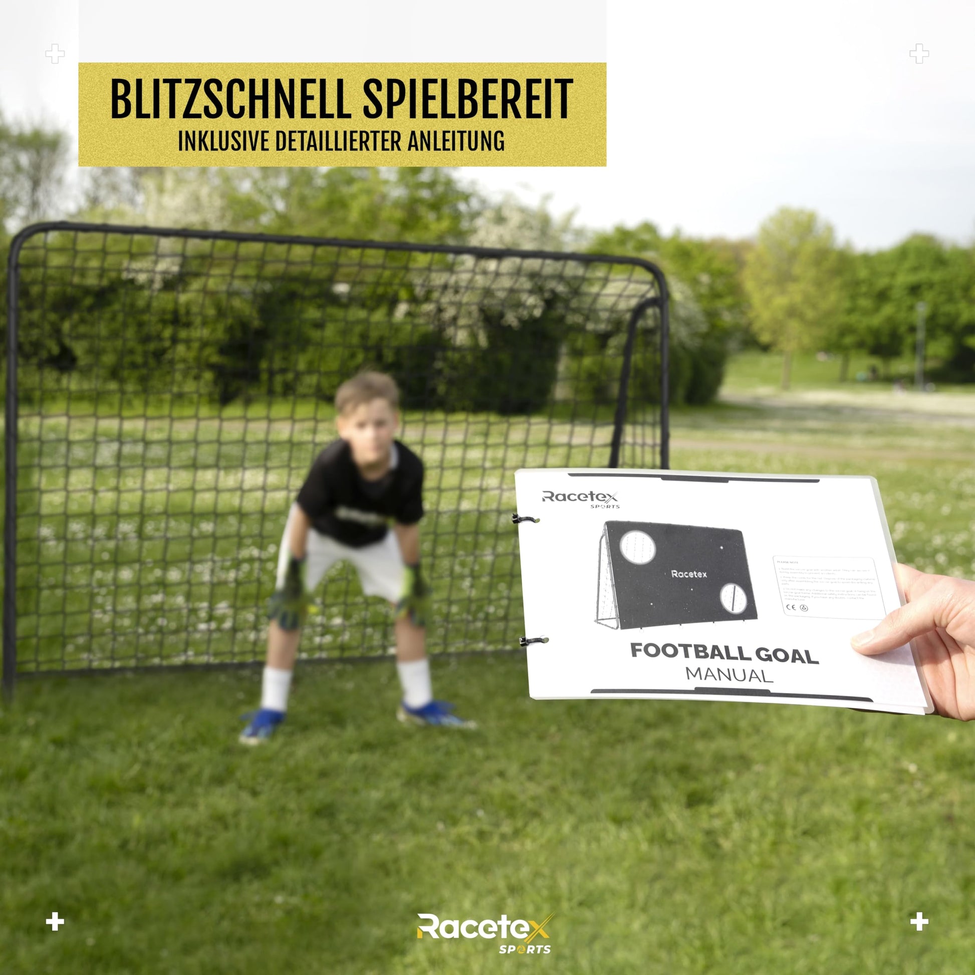 ππ‘ππ. ππ¨π¦π¦ππππ π§π’π₯πͺππ‘π: The soccer goal with target wall is the ideal training device to improve your accuracy, and thanks to the included ground anchors, the target wall remains taut at all times.","β‘ππππ§ππ¦πππ‘πππ ππ¨ππππππ¨π§: Our kids' soccer goal for the garden is ready for use within minutes, as it comes with a step-by-step instruction manual detailing the assembly of the outdoor soccer goal down to the last detail.","π‘ πππ¦ π§π’π₯ πΓπ₯ πππ‘ πππ₯π§ππ‘: The Racetex soccer goals for garden kids combine high quality and durability with sophisticated features, making them the perfect companion for exciting and unforgettable matches."]