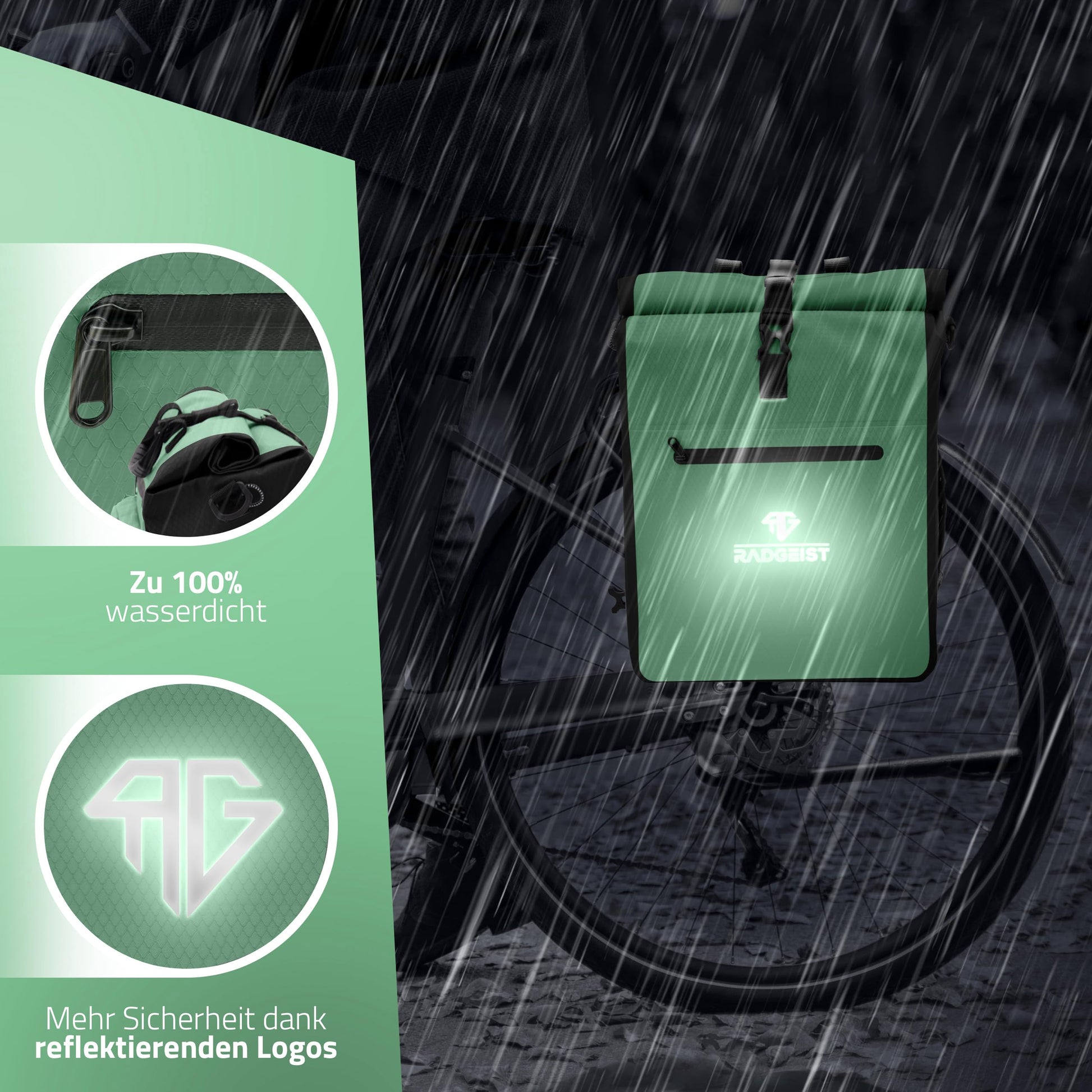 RADGEIST 3in1 bike bag for luggage rack - bike backpack - luggage rack bag - shoulder bag - with laptop compartment - waterproof - 25L - mint