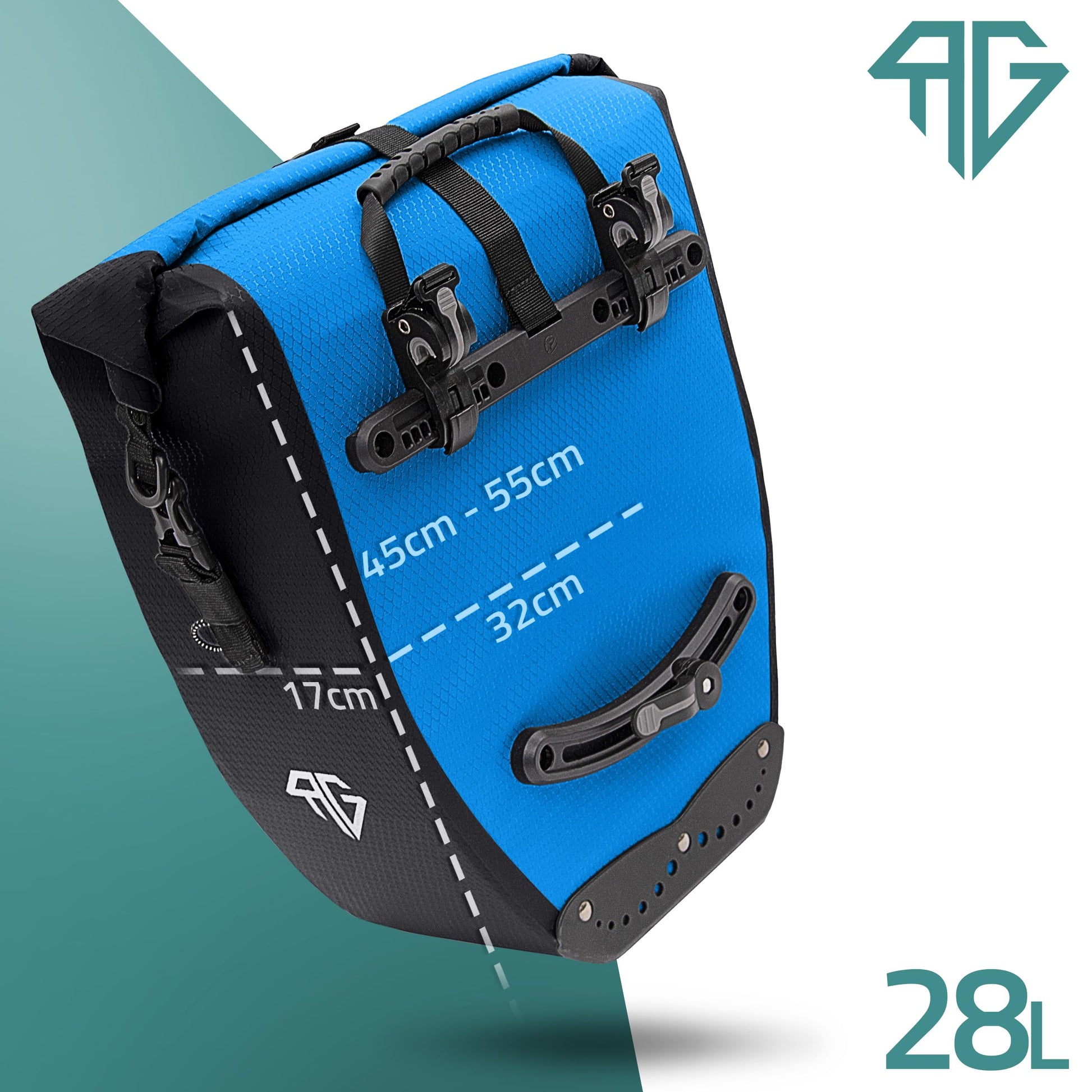 RADGEIST bike bag for luggage carrier - bag for bike luggage carrier - luggage carrier bag waterproof shoulder bag (Blue 28L, set of 2)