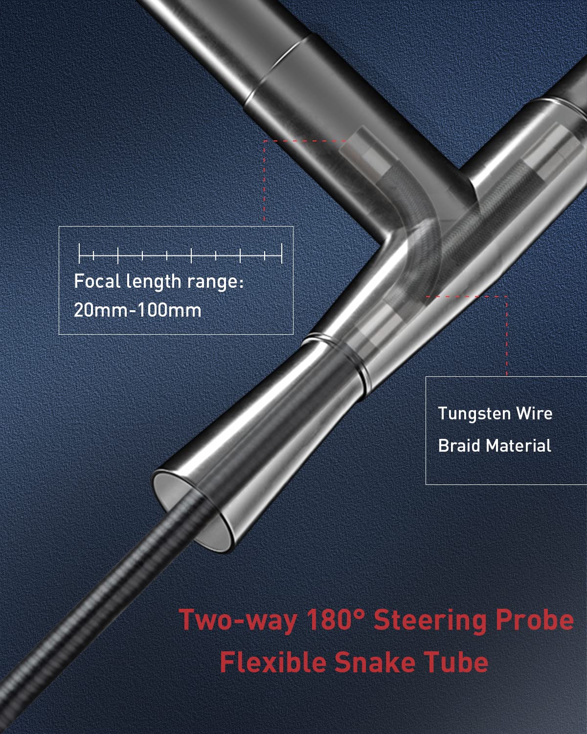 ["π[ 4.3\" IPS Industrial Endoscope ] Inspection camera 4.3\" HD IPS screen. This endoscope camera captures razor-sharp 1 MP images and smooth 720p HD videos. Support for capturing photos and videos for better problem analysis.","π[ Endoscope Rotatable by 180Β° ] Our unique design allows the camera to bend by 180Β°, giving you an almost perfect all-around view. With a camera diameter of 6.2mm and 6 built-in adjustable LEDs. Even in dark environments, you can clearly see every detail.","π[ Removable Screen ] Powerful and innovative technology, you can remove the screen of the industrial endoscope as desired, supports OTG Android, PC (Windows system), diagnostic instrument. Meet your different needs. Note: iOS system is not supported.","π[ High-Temperature Protection ] Operating temperature: -10Β°C to +90Β°C. A unique temperature protection technology designed for professional automotive endoscopes is used for work in harsh environments. If the temperature exceeds 90 degrees, the device will automatically shut off as a protection.","π[ High-Quality Pipe Camera ] Endoscope 2M flexible cable, camera IP67 waterproof, for your various testing requirements. We offer a 12-month warranty after purchase and you can contact us anytime if you have any questions. Upgrade Optimization: β The endoscope packaging has been upgraded to a more durable, portable toolbox. β‘ New languages ββadded to the screen menu: German, Italian. β’ Cable extension to 2M."]