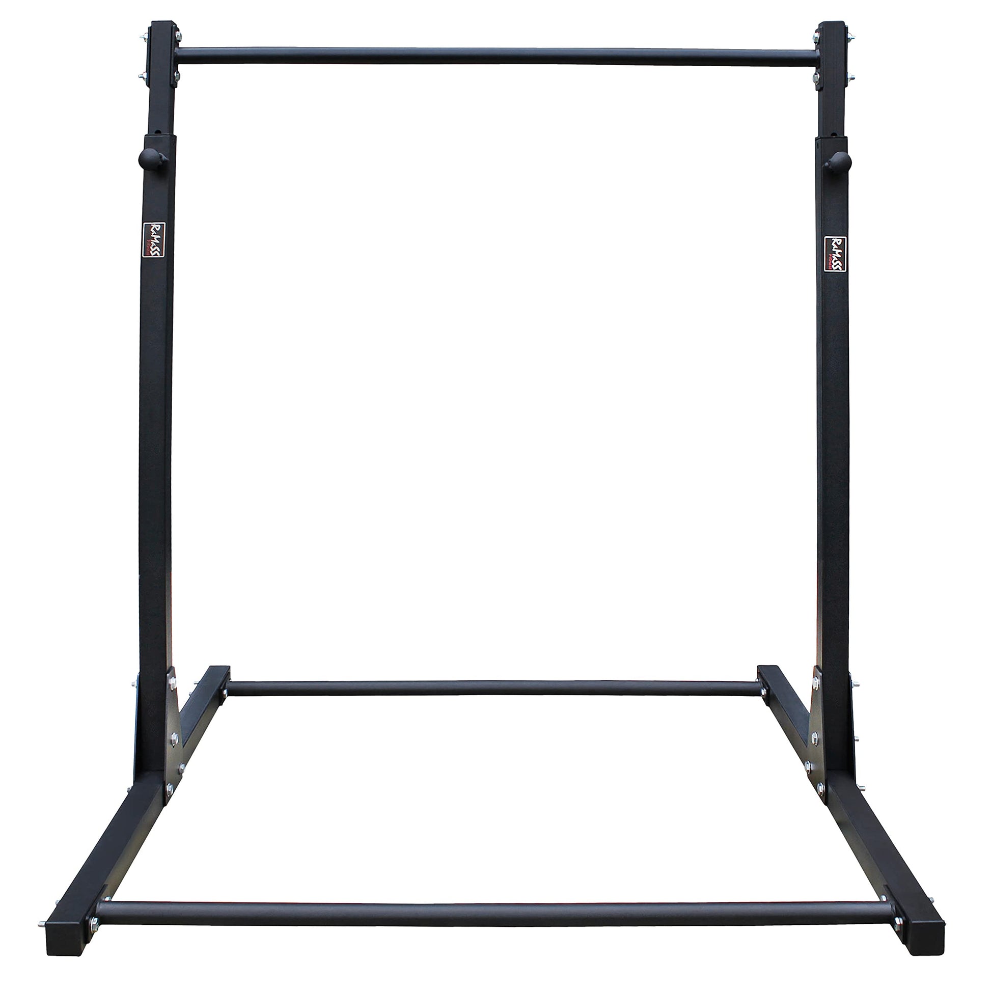 ["STABILITY IS THE KEY - Unlike other pull-up bars, our pull-up station is made of a solid steel construction, providing you with more stability and less equipment movement than portable pull-up bars. Perfect fitness equipment for home (Indoor or Outdoor).","Ideal for Calisthenics, Gymnastics, Strength Training.","Adjustable Height: The pull-up stand has 10 height options, from 51 inches to 85 inches.","Maximum user weight 330 lbs - Height 85 inches - Width 49 inches - Depth 46 inches. Bar length: 45 inches. Assembly tools are included, no additional tools required.","Performance Guarantee: Our pull-up stands are designed and manufactured to last a lifetime. In fact, we guarantee their performance. If anything happens to your pull-up bar within the first 2 years of use, just let us know and we will provide a refund or replacement."]