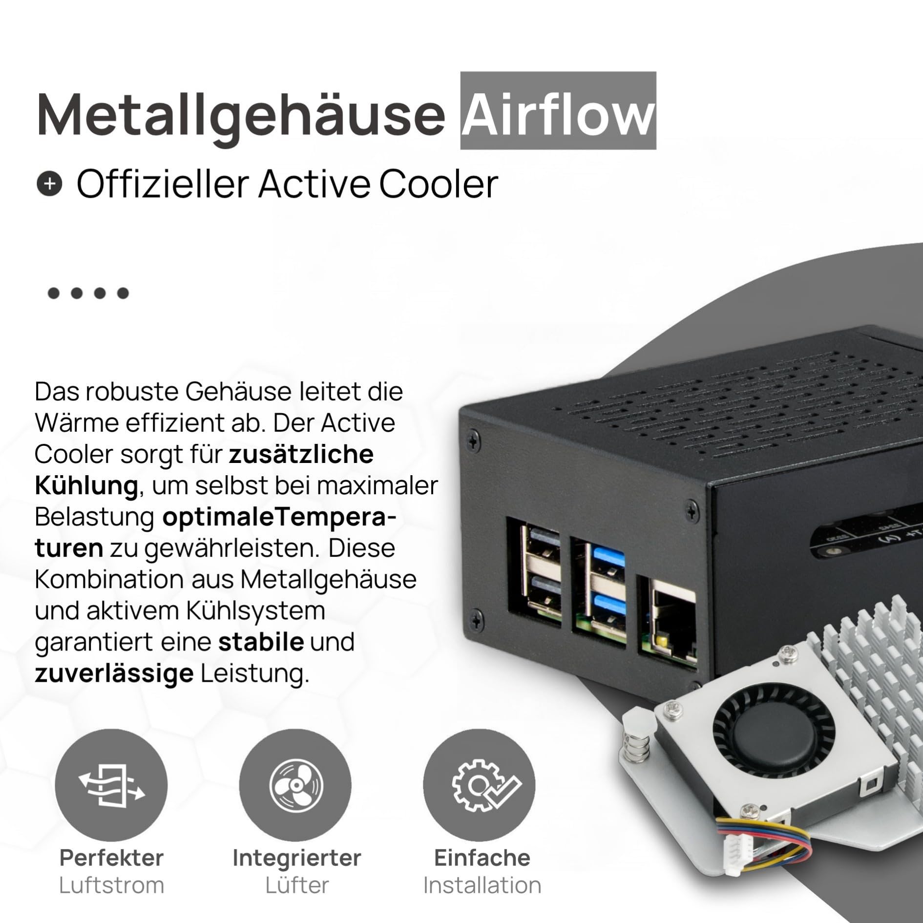 ✔ Metal case: Robust case that combines protection and cooling. The active cooler and NVMe Hat fit perfectly into the case.