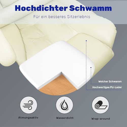 Rattan tree Ergonomic Office Chair, Desk Chair, PU Leather Computer Chair with Padded Armrest and Soft Headrest, Backrest, Tilt Function, Height Adjustable, Executive Chair, Beige