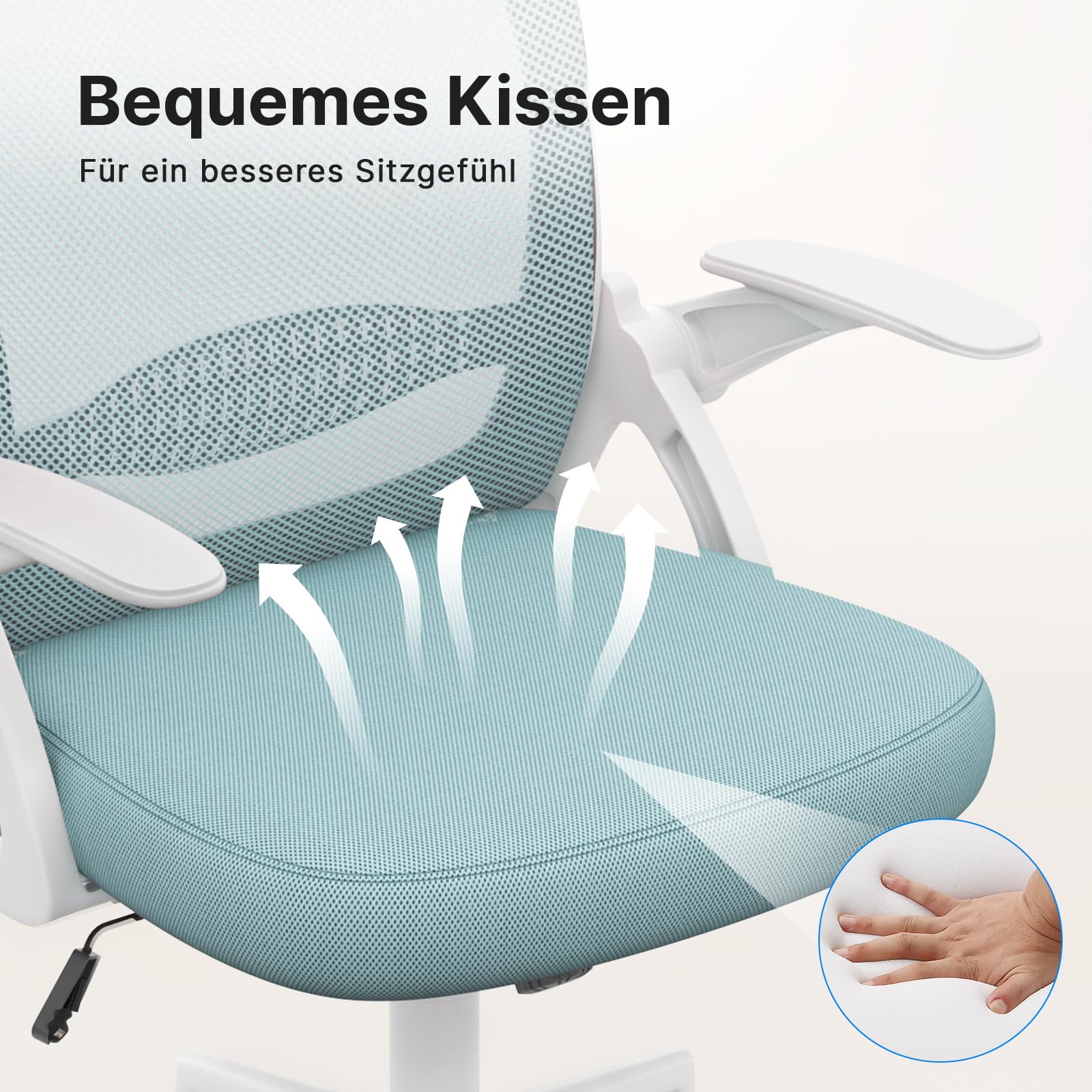 ["【Ergonomic Design】The curved backrest conforms to the natural curves of the body, relieving the back. With the armrests that can be folded up 90°, you can easily slide the computer chair under the desk after work to save space.",