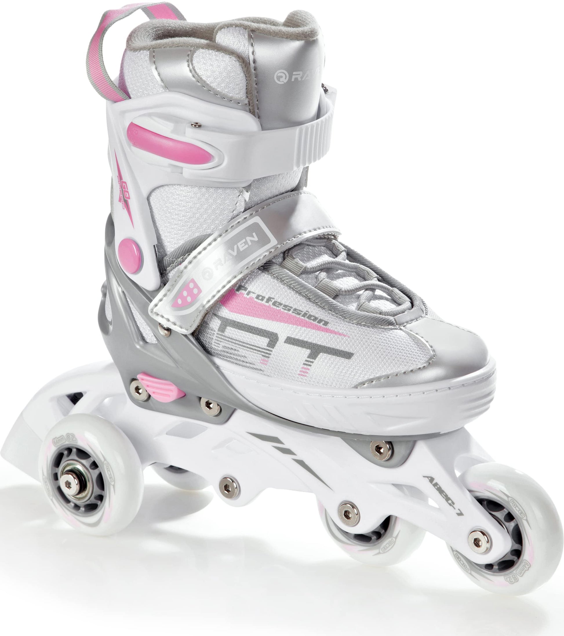 RAVEN Profession 3in1 Inline Skates Triskates Roller Skates Inline Skates for Kids and Adults adjustable (White/Pink, 28-32 (18.5cm-21cm))