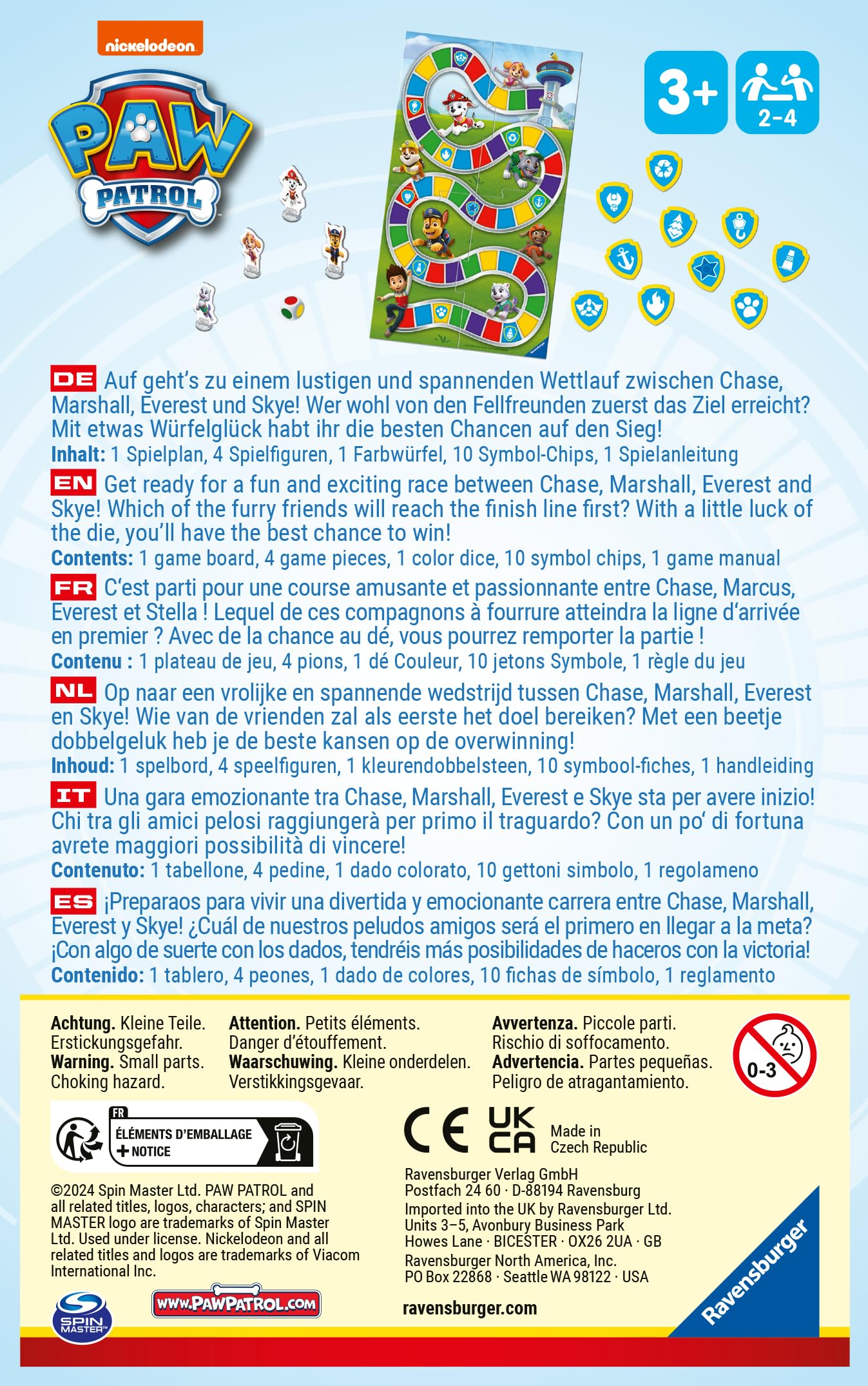 ["Product 1: What is Paw Patrol and which dogs belong to it? Players go on a discovery journey and learn interesting facts about the helpers on four paws. Funny games complement the puzzle experience - the ideal activity for children", "Product 1: After the puzzle is assembled, the world of Paw Patrol comes to life with the tiptoi pen. With real sounds and exciting information about Marshall, Chase, and Co", "Product 1: The interactive puzzle game offers long-lasting fun for children. It promotes motor skills and concentration and imparts interesting knowledge about Ryder and his brave fur friends. There is plenty to discover in Adventure Bay", "Product 1: Great gift idea: The tiptoi puzzle for little explorers: Paw Patrol is a learning game and puzzle in one and therefore the ideal gift for children aged 4 and up - whether for Christmas, Easter, or birthdays", "Product 2: This dice racing game is perfect for 2-4 players aged 3 and up who are big fans of the Paw Patrol series featuring Chase, Marshall, Everest, and Skye", "Product 2: Fun and exciting race between the Paw Patrol heroes Chase, Marshall, Everest, and Skye! The fur friend who reaches the headquarters first with a bit of dice luck wins the game", "Product 2: Due to the suspense until the last minute of the game, the simple rules, and the cute dog illustrations, the game in a compact format offers long-lasting fun and brings joy to any game table", "Product 2: Ideal as a gift for all big and small fans of the Paw Patrol series"]