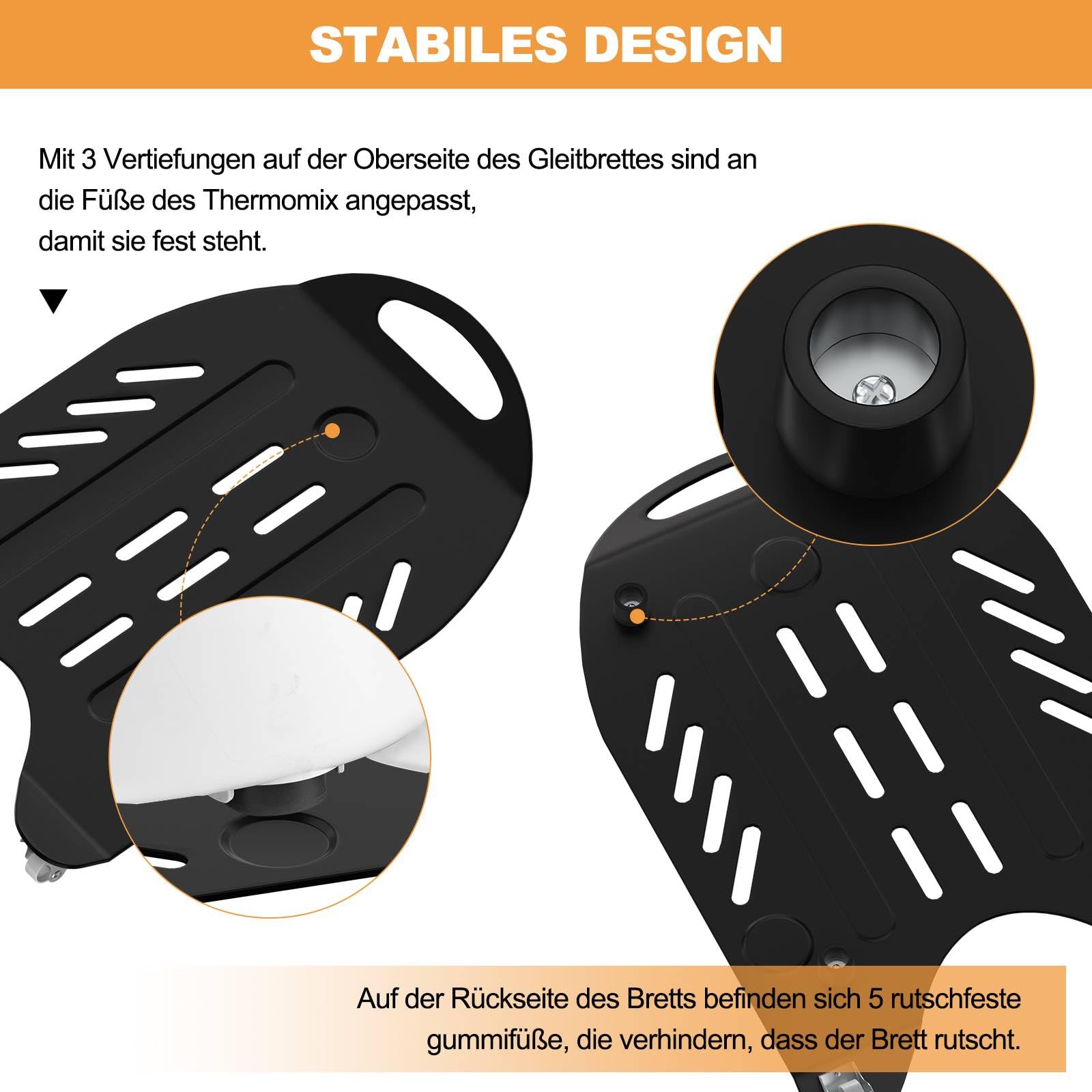 Raweao Slider Board for Thermomix TM6, Rolling Board for Thermomix Slider Board TM6, Metal Kitchen Appliance Slider compatible with Thermomix TM5 TM6 (Black)