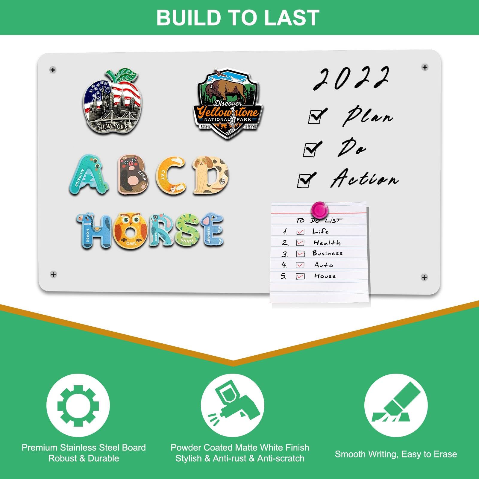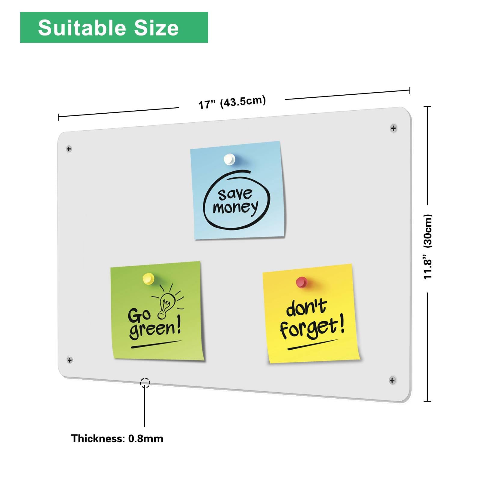 ["【MAGNETIC DISPLAY BOARD】Although it is not magnetic itself, the Raweao magnetic board provides a perfect surface for use with all kinds of magnets – travel magnets, magnetic letters/numbers, magnetic spice jars, magnetic puzzle toys, magnetic plants, and more! Note: Non-magnetic regular metal does not stick to the board.","【Suitable Size】30 x 43.5 cm. Only 0.8mm thick, which is ultra thin, fits better on the wall and saves space. The magnetic board is suitable as a kitchen planner/organizer, for notes/presentations in the office, or as a writing board/educational tool in the children's room.","【Frameless Design + NEUTRAL COLOR LOOKS GOOD ANYWHERE】Sleek and frameless design with the classic neutral color, the Raweao magnetic boards are perfect for presentation anywhere, such as at home, in the kitchen, bedroom, office, or classroom. The ultra-thin body fits perfectly on any surface. Writable with alcohol-based markers and washable with a wet cloth and/or gentle cleaner.","【Multipurpose Use】The magnetic board can be used as a writable whiteboard and memo board, including - shopping list, task list, reminder board, drawing board, office board, daily menu planner, calendar, schedule planner, fridge organizer.","【After-Sales Service】In case of transport damage, please contact us and we can either send you a new one for free or refund the full amount."]