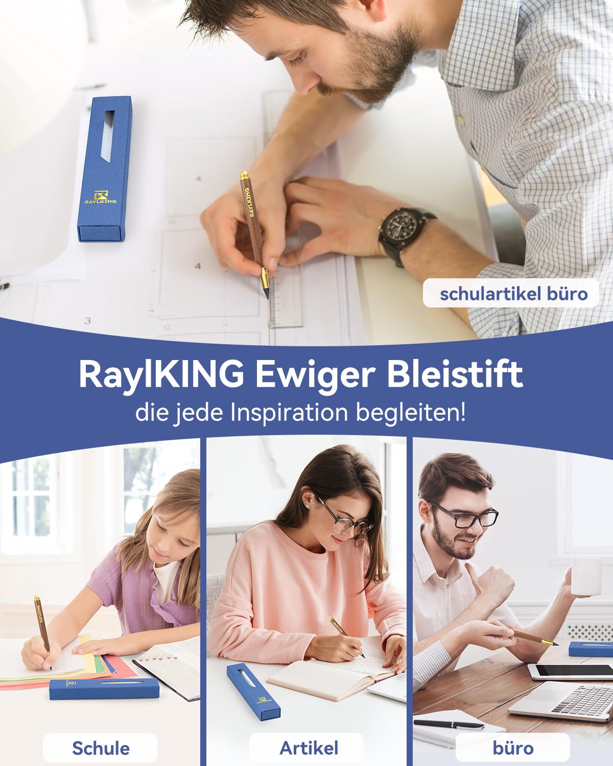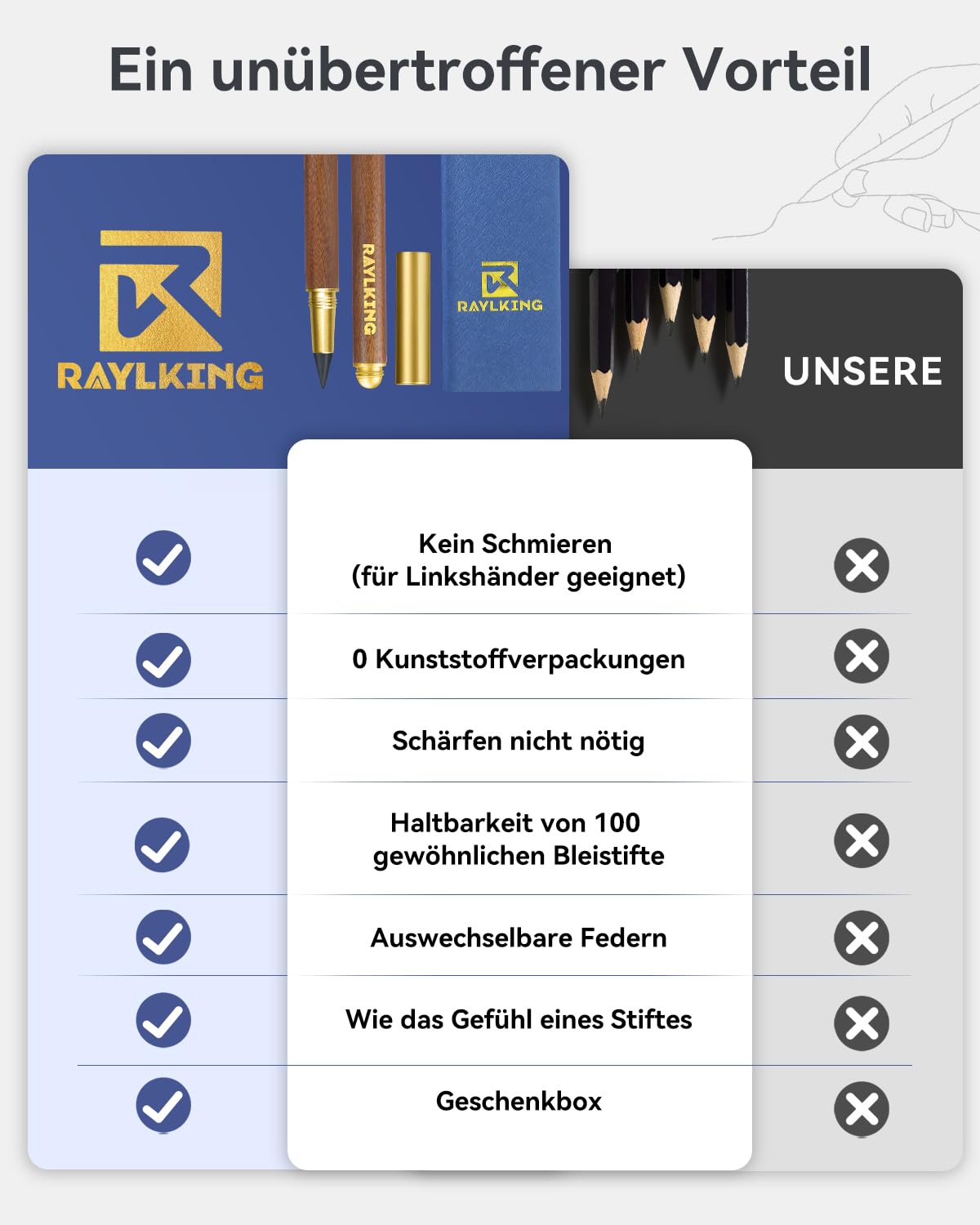 RaylKING Eternal Pencil - C1300, precision crafted from sandalwood - also equipped with 2 replaceable graphite leads with fine brass thread and HB hardness, elegant gift box