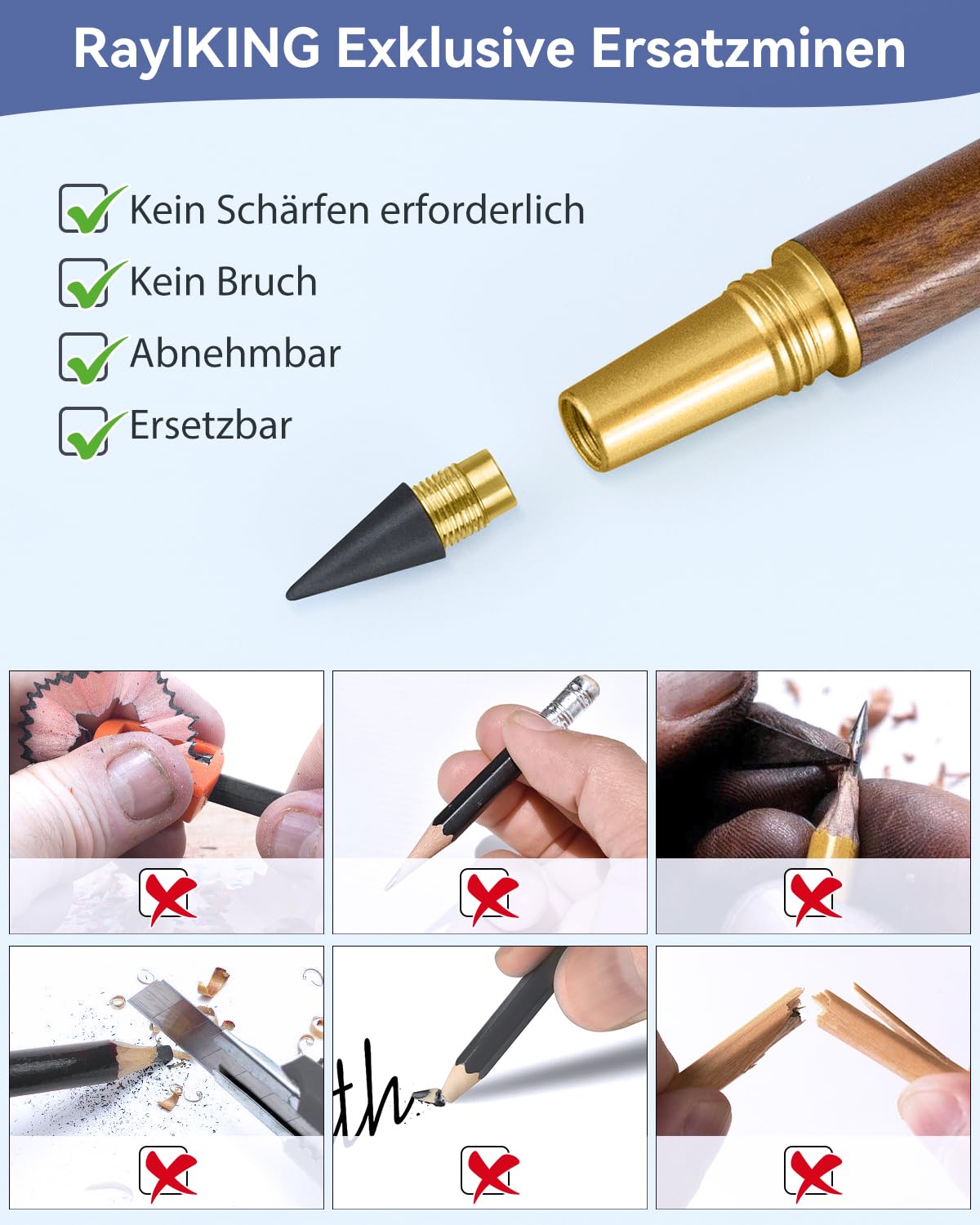 Durable and reliable: Each Everlasting Pencil is made of high-quality wood with a unique, naturally appearing pattern, and the joints are made of beautiful and durable brass for added strength. Through testing, a higher-density spring has been selected to provide you with a better writing experience!
