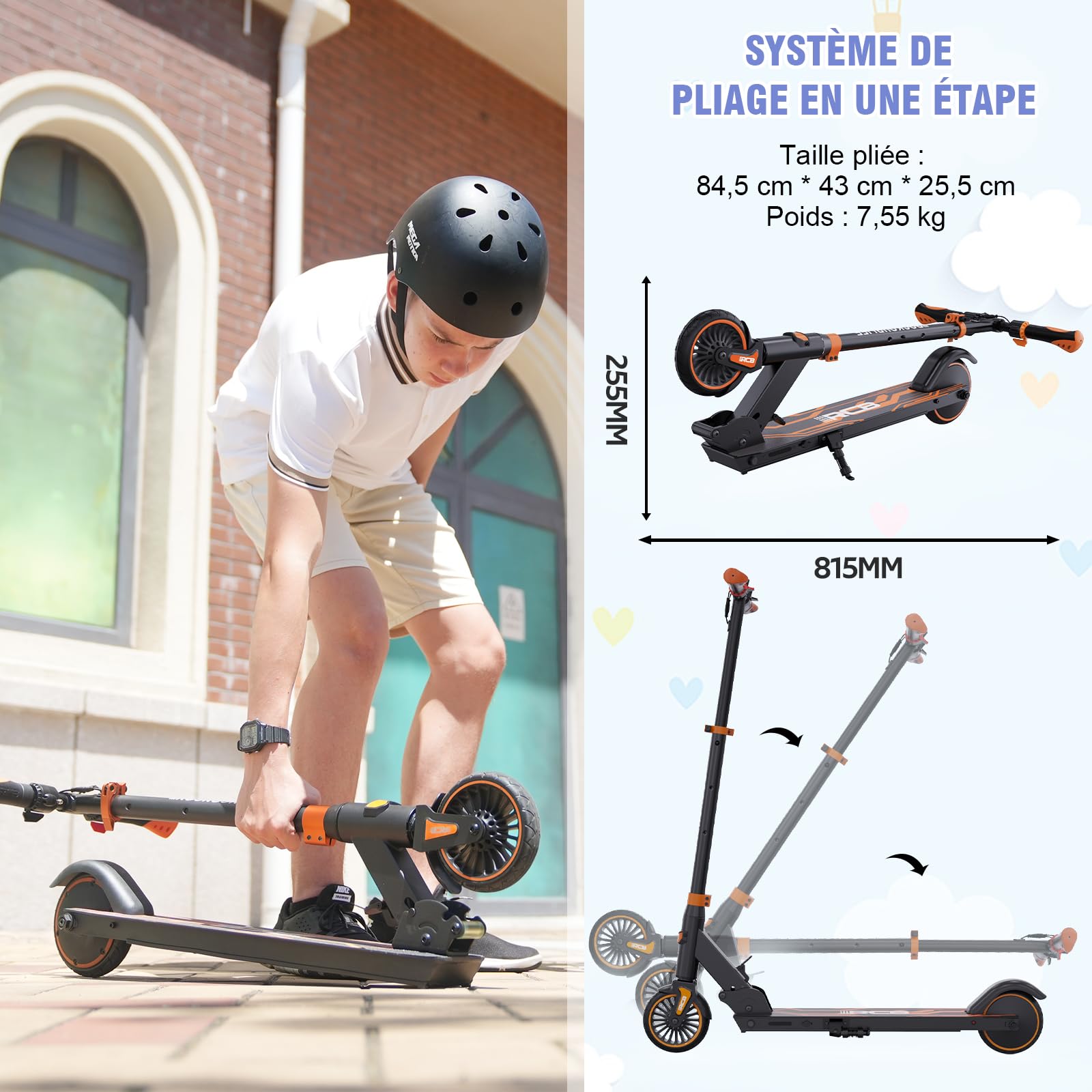 ["【High Performance】: R15 Kids Electric Scooter is equipped with a 250W motor, reaching a top speed of 20KM/H, with a range of 7.5 to 10 miles and a maximum weight capacity of 176 lbs, your little ones will have endless fun exploring their surroundings.","【Adjustable Height】: With its adjustable height from 33 inches to 41 inches, R15 Electric Scooter can easily accommodate different kids aged 8 -16 years old and 45-65 inches tall, making it a perfect choice for growing children.","【Folding Design】: Designed with convenience in mind, R15 Electric Scooter can be easily folded within seconds. Folded size: 32*17*10 inches, Weight: 16.64 lbs. This compact size allows for easy storage and transportation.","【Safe and Reliable】: Safety is our top priority. R15 is equipped with electronic brake + mechanical brake. The zero-start function ensures that the electric scooter only starts accelerating when the speed reaches 3 mph.","【Please Note】Please familiarize yourself with local laws and regulations before purchasing. Prohibited from riding on public roads. Return requests for such issues will not be accepted."]