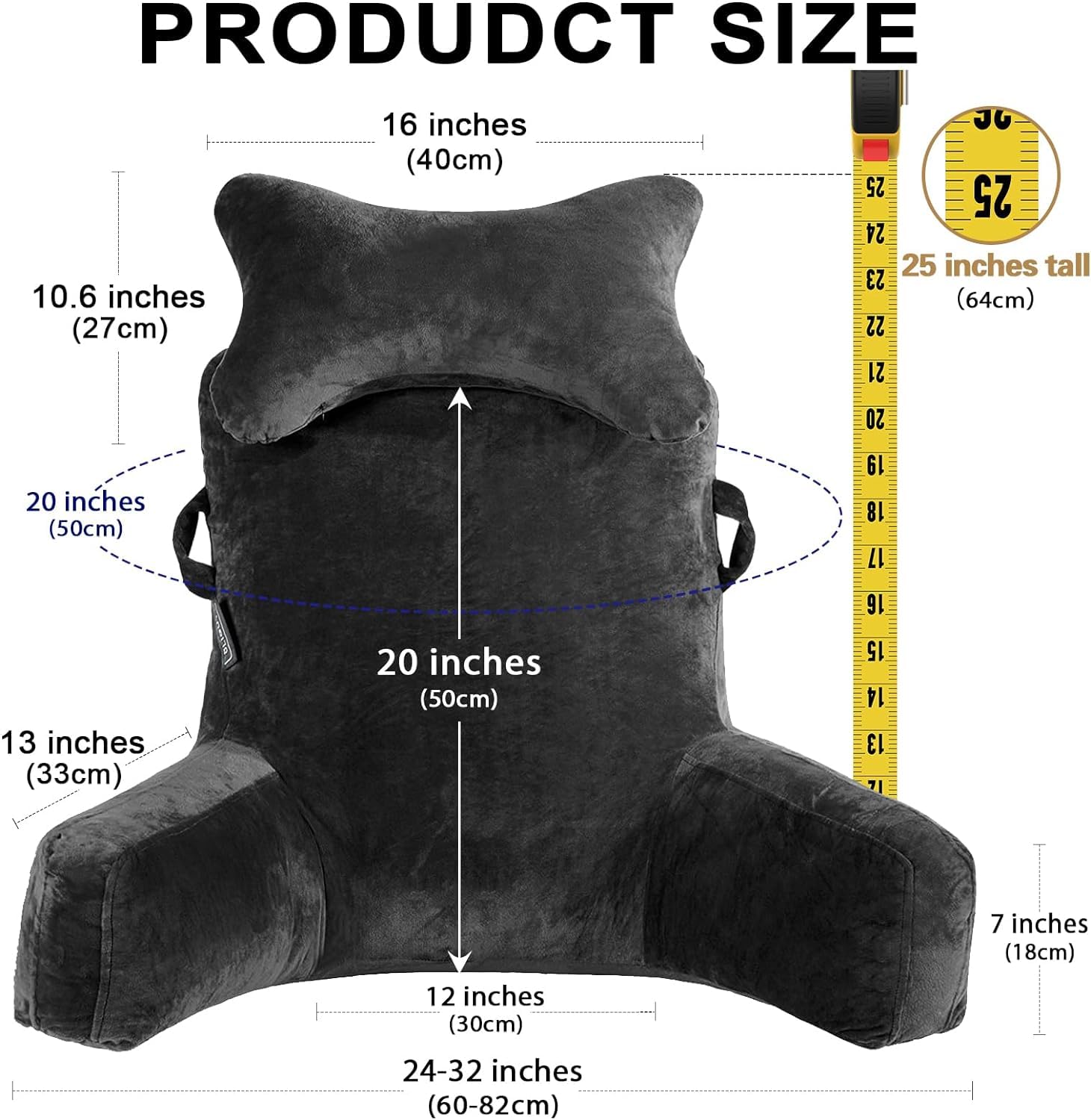 "🎁NECK PILLOW AND ARMREST - Your bed rest pillow with removable and adjustable neck roll provides full support to your neck, also achieving multifunctional use to support head, back, waist, and legs. This reading pillow is also equipped with improved armrests, increased arm height by 7 inches, allowing better support for your arms."