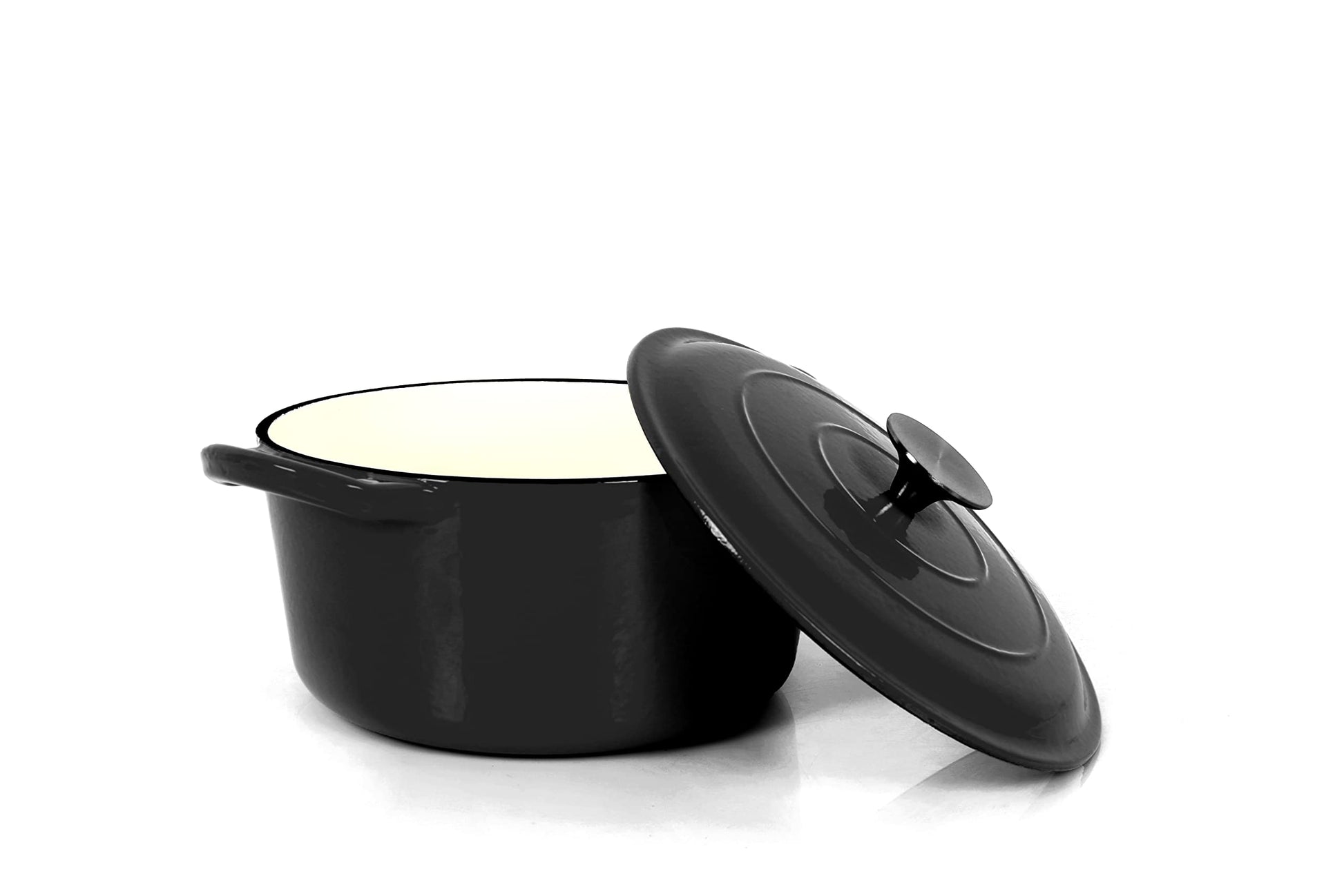 ["HIGH-QUALITY COOKING EQUIPMENT - The Dutch oven (3.5 L) made of cast iron is suitable for all types of stoves. Thanks to the enamel coating, the cast iron pot is easy to clean and can easily withstand high temperatures.","FOR EVERY COOKING SESSION - Due to the optimal heat distribution and retention of the high-quality cast iron, the cooking pot is ideal for preparing delicious dishes such as casseroles or pot roasts.","ENHANCED FLAVOR - Thanks to the nodules on the lid, no moisture is lost and there is a flavorful flavor development (raindrop effect).","EASY TO CLEAN - Thanks to the enamel coating, the Dutch oven is cut- and scratch-resistant and very easy to clean by hand with a damp cloth.","HANDLING - Thanks to the ergonomic handles, the roaster can be safely transported from the oven to the covered table. The lid is equipped with a large stainless steel knob."]