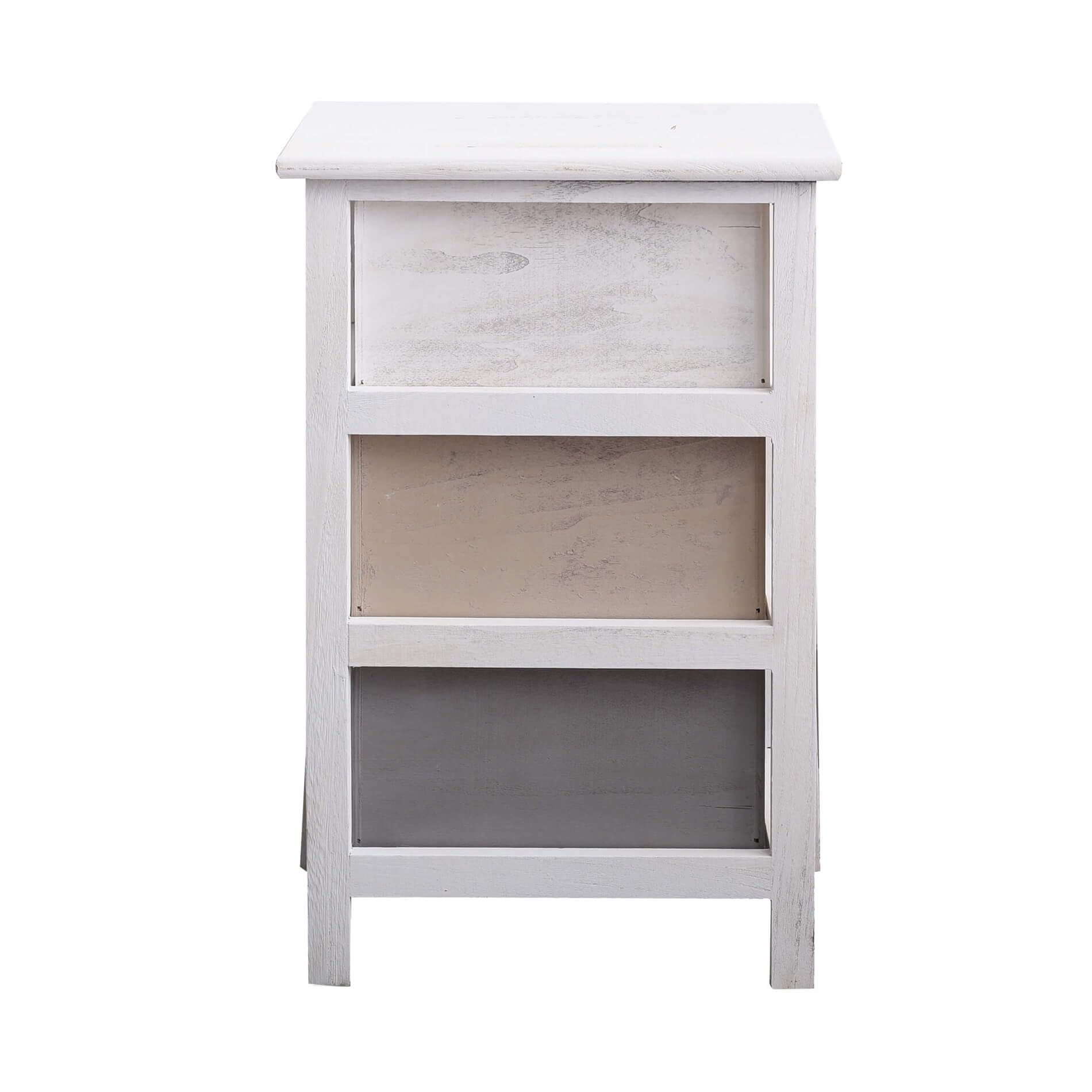 Rebecca Mobili wooden dresser, nightstand in shabby style, 3 drawers, suitable for bedroom or bathroom, wood, white and grey - dimensions: 57.5 x 37 x 27 cm (HxLxW) - item RE4161.