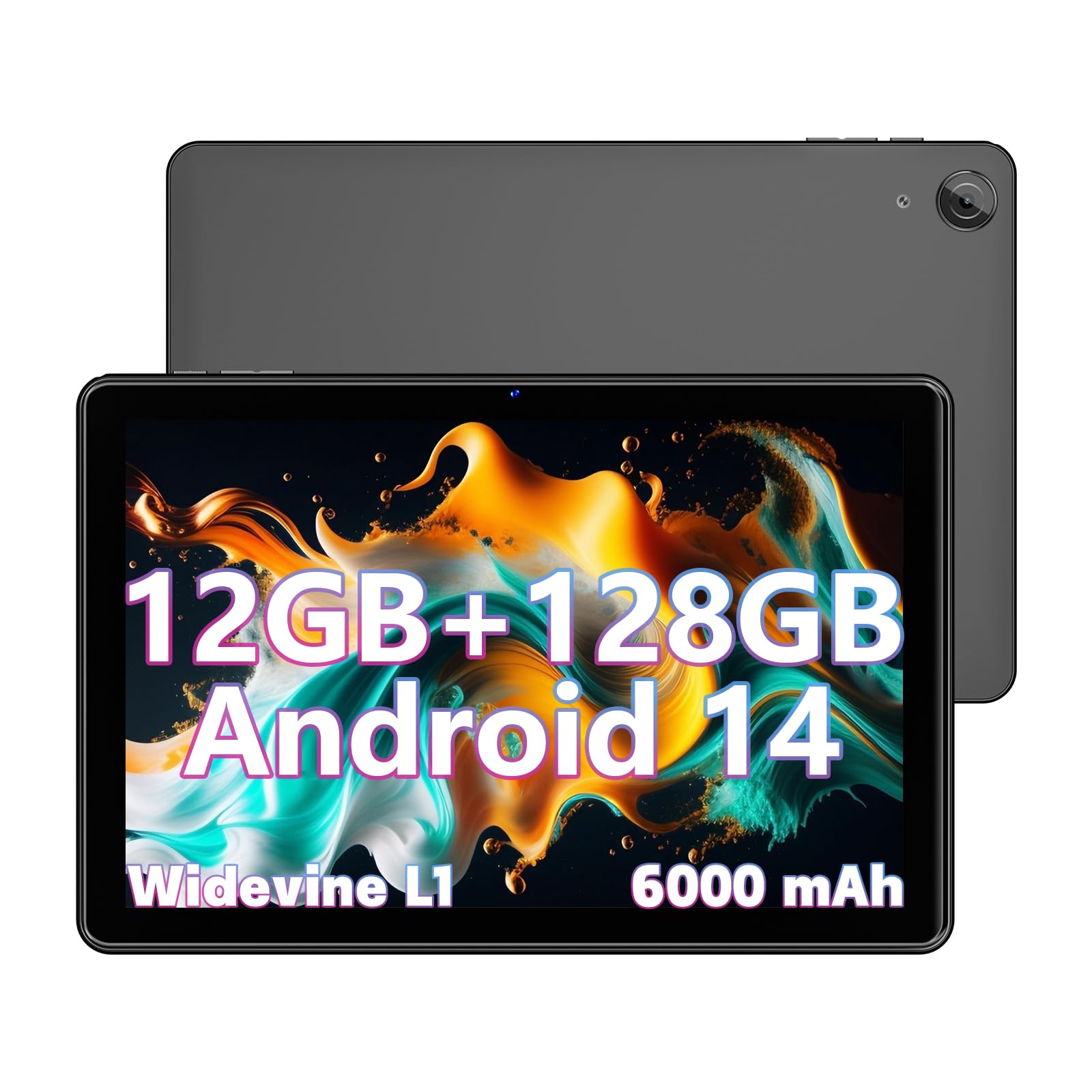 ["[10.1 Inch Display + Widevine L1] The tablet with a 10.1-inch 1280 x 800 IPS display offers a realistic visual experience with clear details. Thanks to the fully laminated Incell IPS display technology, the screen is clearer, more colorful, and also offers a wider viewing angle. Effectively filters harmful blue light, reduces eye fatigue and irritation, and protects your eye health. In addition, the K70 tablet supports Widevine L1, allowing you to smoothly view copyrighted content.", "[Octa Core Android 14 Tablet] The Android tablet features the latest Android 14 operating system and a 1.8GHz octa-core processor. Ensures excellent performance, smooth multitasking, eliminates unexpected ads, focuses on privacy and security by developing enhanced application permissions that give users full management control. This 10-inch tablet easily handles daily apps and games. Say goodbye to delays and welcome smooth multitasking.", "[Additional Storage Capacity] Immerse yourself in a world of endless possibilities with this 10-inch Android tablet with 12GB RAM + 128GB ROM. Increase storage capacity by adding 1TB with an SD card, allowing the 10-inch tablet to store your movies, music, games, and more. Enjoy endless mobile entertainment with everything you love at your fingertips.", "[Long Battery Life] Built-in 6000mAh high-capacity battery, combined with the intelligent power management function of the Android 14 system, is able to meet the daily use needs. Even with intense use, it can maintain a long battery life and reduce issues with frequent charging.", "Rich Connectivity Options: Supports Wi-Fi 6, Bluetooth 5.4, and 5G network (optional) to provide stable and high-speed connections. It is also equipped with a USB-C port for fast data transfer and charging support, and is compatible with a variety of device extensions to meet the requirements of various usage scenarios. After-Sales Warranty: One year product warranty period, after purchase in case of any issues, feel free to contact customer service, we will assist you as soon as possible to solve the problem."]