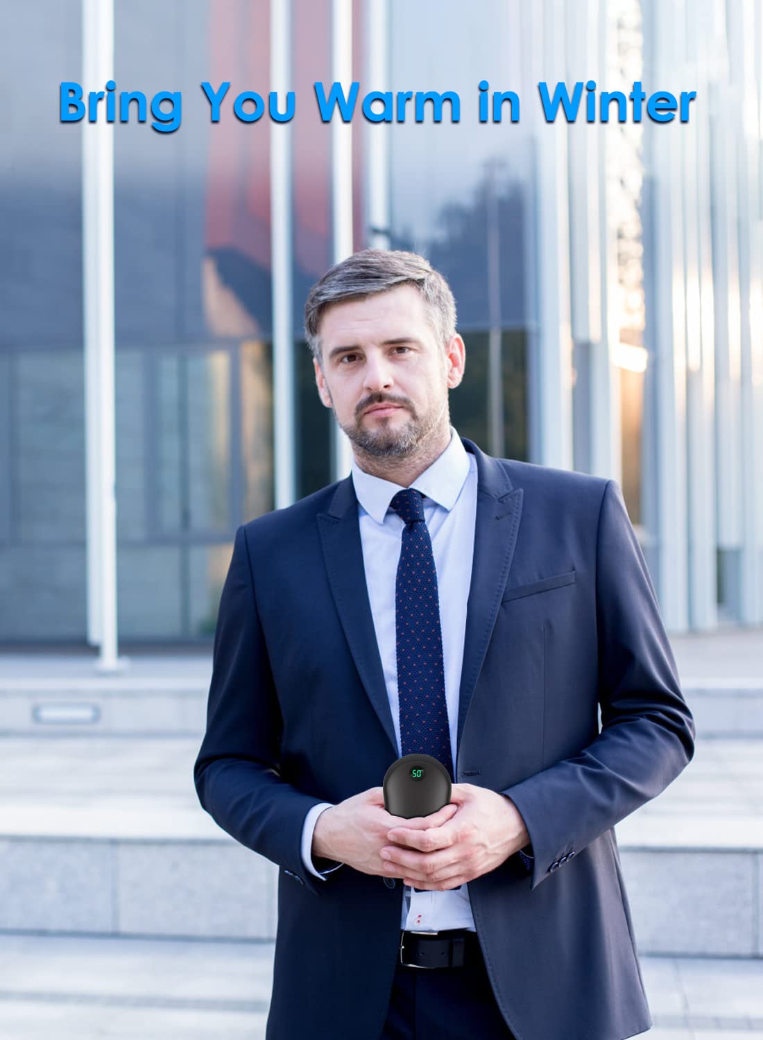 ["10000 mAh High Capacity & 15 Hours Heating"] "10000 mAh large capacity is available to charge your smartphone 2-3 times as a power bank, and the heating time of up to 15 hours brings you a free outdoor driving experience without worrying about the cold. Portable and lightweight, very suitable for outdoor use, such as waiting for the bus, hiking, golfing, camping, or warming hands at work" ["2S Fast Heating & Double-Sided Heating"] "Hand warmer heats up quickly in 2s, simply press the switch and release the heat immediately for you. Adjustable to 45 ℃, 50 ℃, and 55 ℃. The double-sided heating area is larger than others, wrapping your entire hands and quickly reaching the temperature. People with Raynaud's disease or dysmenorrhea can use it as a heat pack to warm the sore area through simulated heat therapy" ["Smart Temperature Display & 4 LED Battery Display"] "The electric hand warmer has a digital screen displaying the heating temperature and temperature control in 3 levels [113℉-131℉]. Choose a comfortable temperature, winter is no longer cold. 4 LED indicators show the remaining battery (25%, 50%, 75%, 100%), using intelligent LED indicators to track remaining power and temperature" ["Intelligent Control and Safety Heating"] "Intelligent control of the IC chip with: short circuit protection, overvoltage protection, overcurrent protection, overcharge protection, overheating and over-discharge protection. Equipped with the same battery as Tesla's electric car and passed the UL lab test in the USA. Multiple safety guarantees to achieve impact resistance, scald protection, slip resistance, and explosion protection" ["What You Get"] "Gift box with 1 * hand warmer (2022 version), 1 * lanyard, 1 * USB cable, 1 * user manual. 2 in 1 electric pocket warmer with exquisite packaging, it is an ideal choice whether you use it for yourself or as a Christmas gift for family and friends"