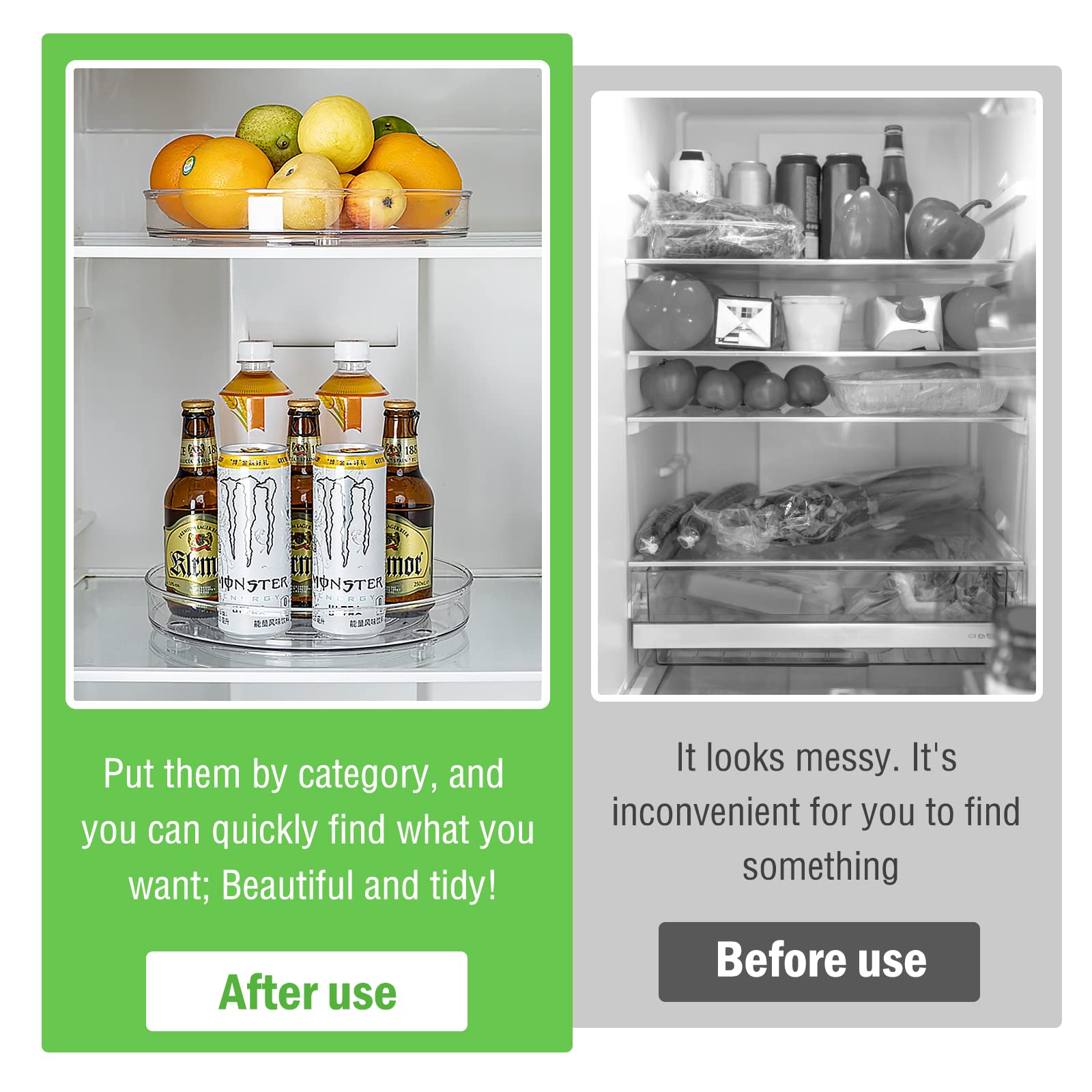 "✔️【REFRIGERATOR TURNTABLE】Refrigerator organizer turntable Maximizes storage space in the kitchen and keeps the kitchen organized and tidy."